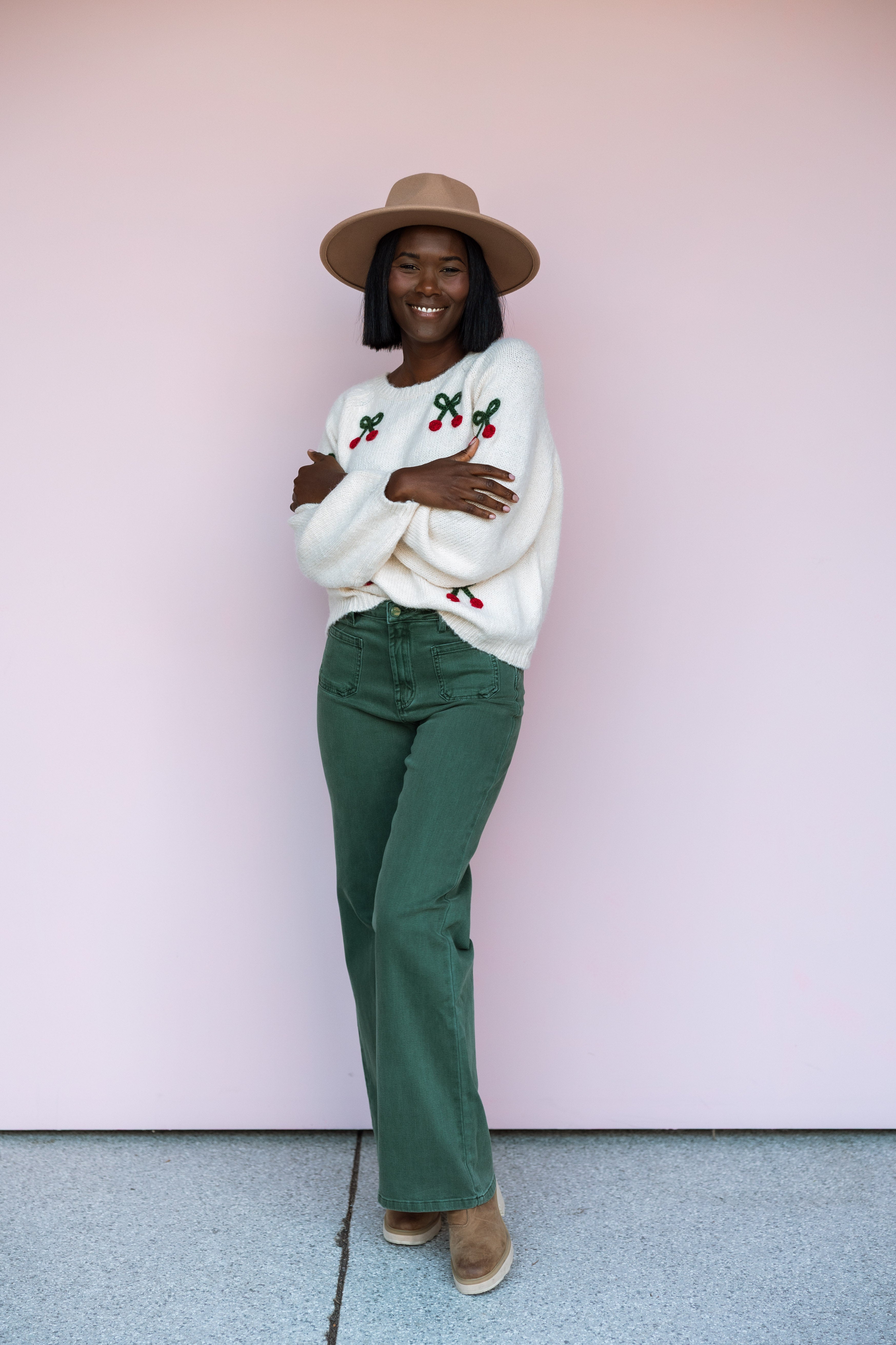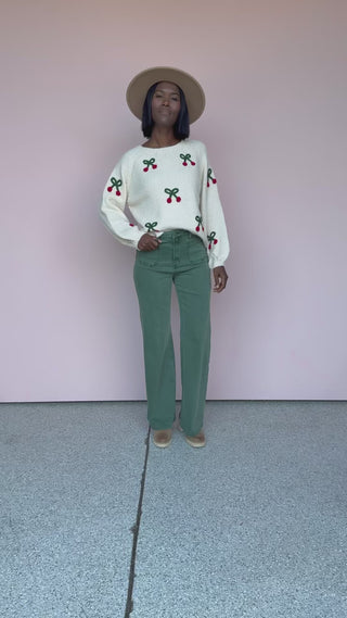Add a playful and festive touch to your wardrobe with our Cherry Sweater. This cozy knit is perfect for brightening up chilly days.
