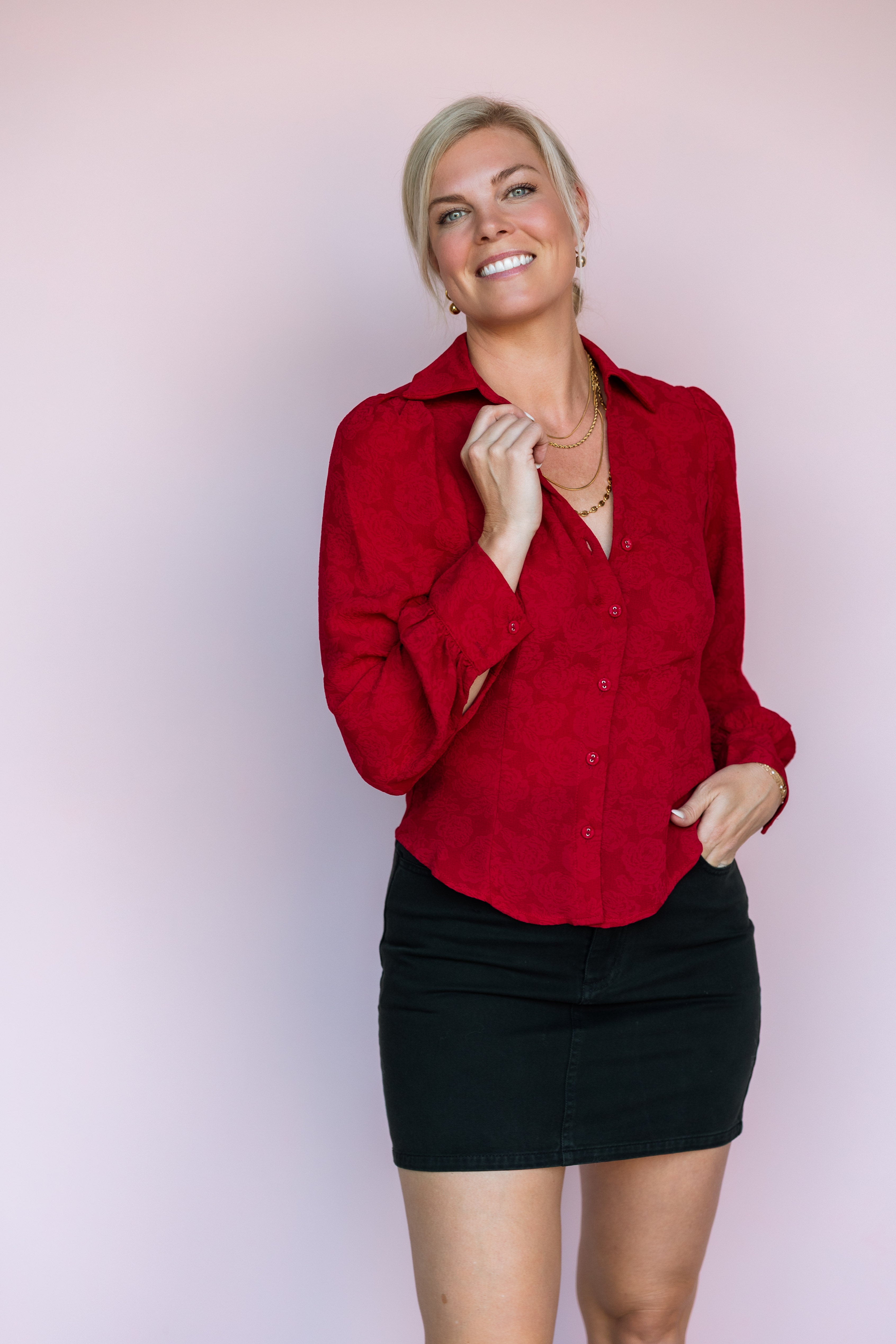Make a vibrant and polished statement with our Wine Sadie Top. This top perfectly combines structured tailoring with a feminine, rich color.