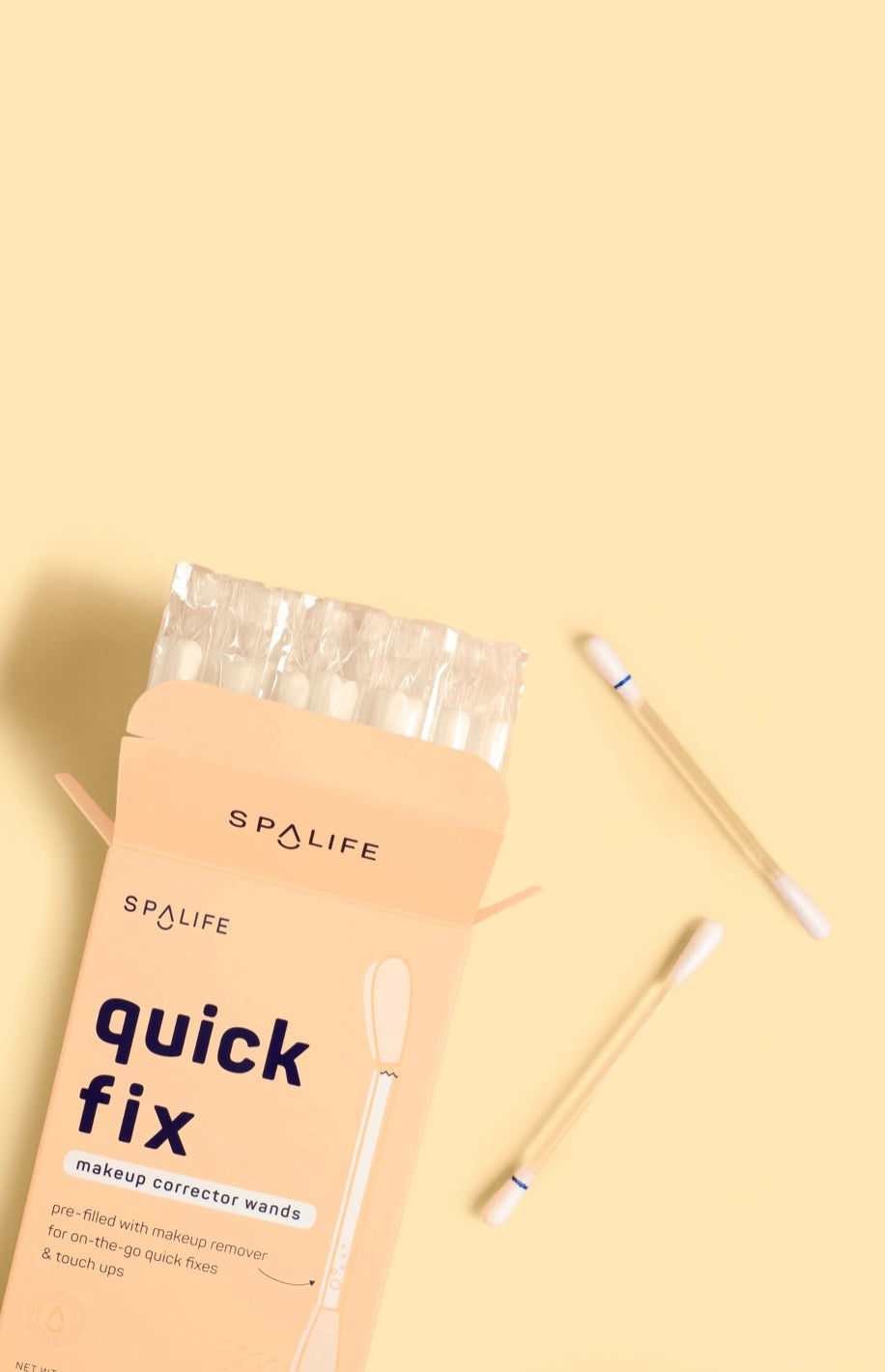 • Makeup remover will flow through the wand into the opposite swab.