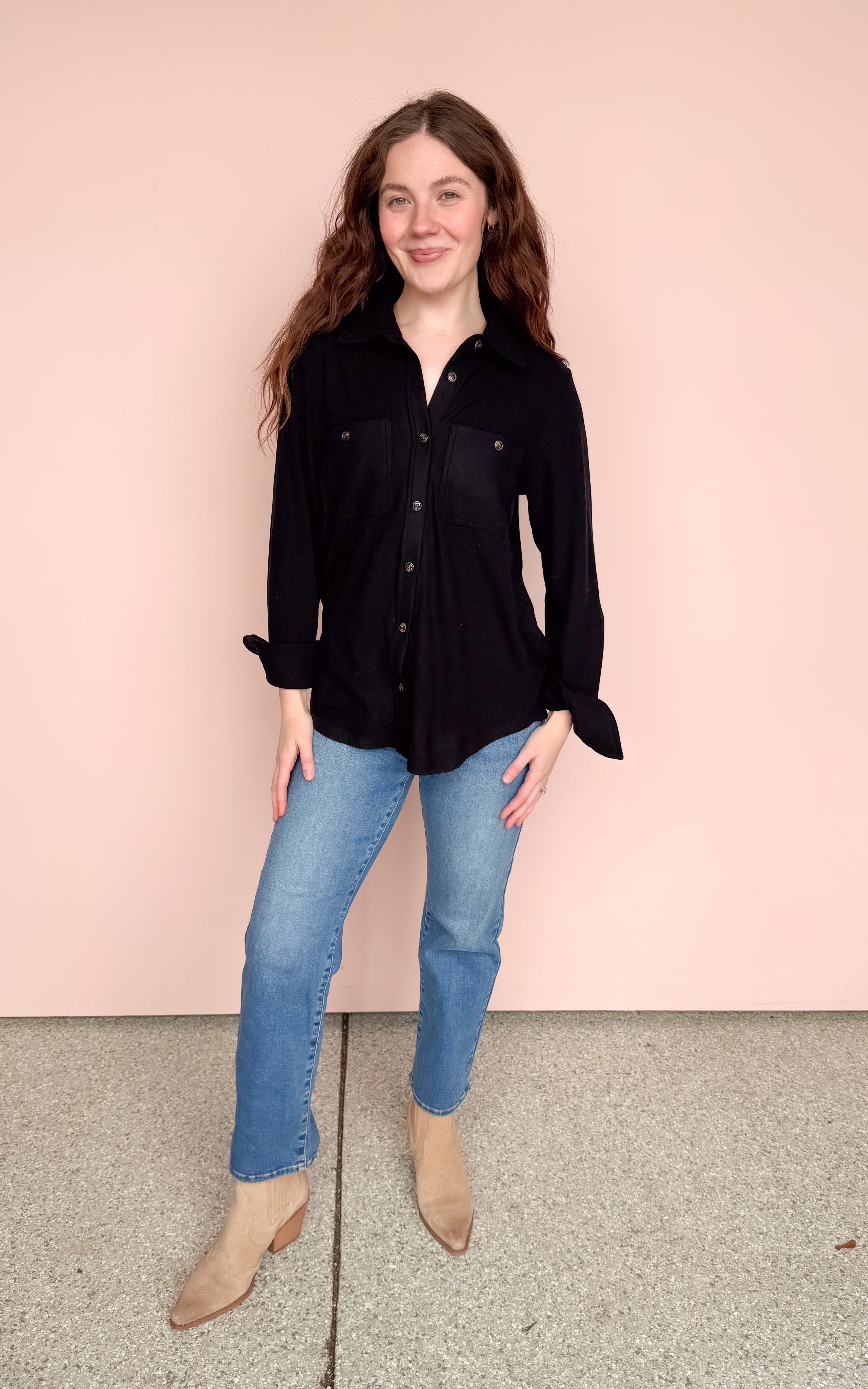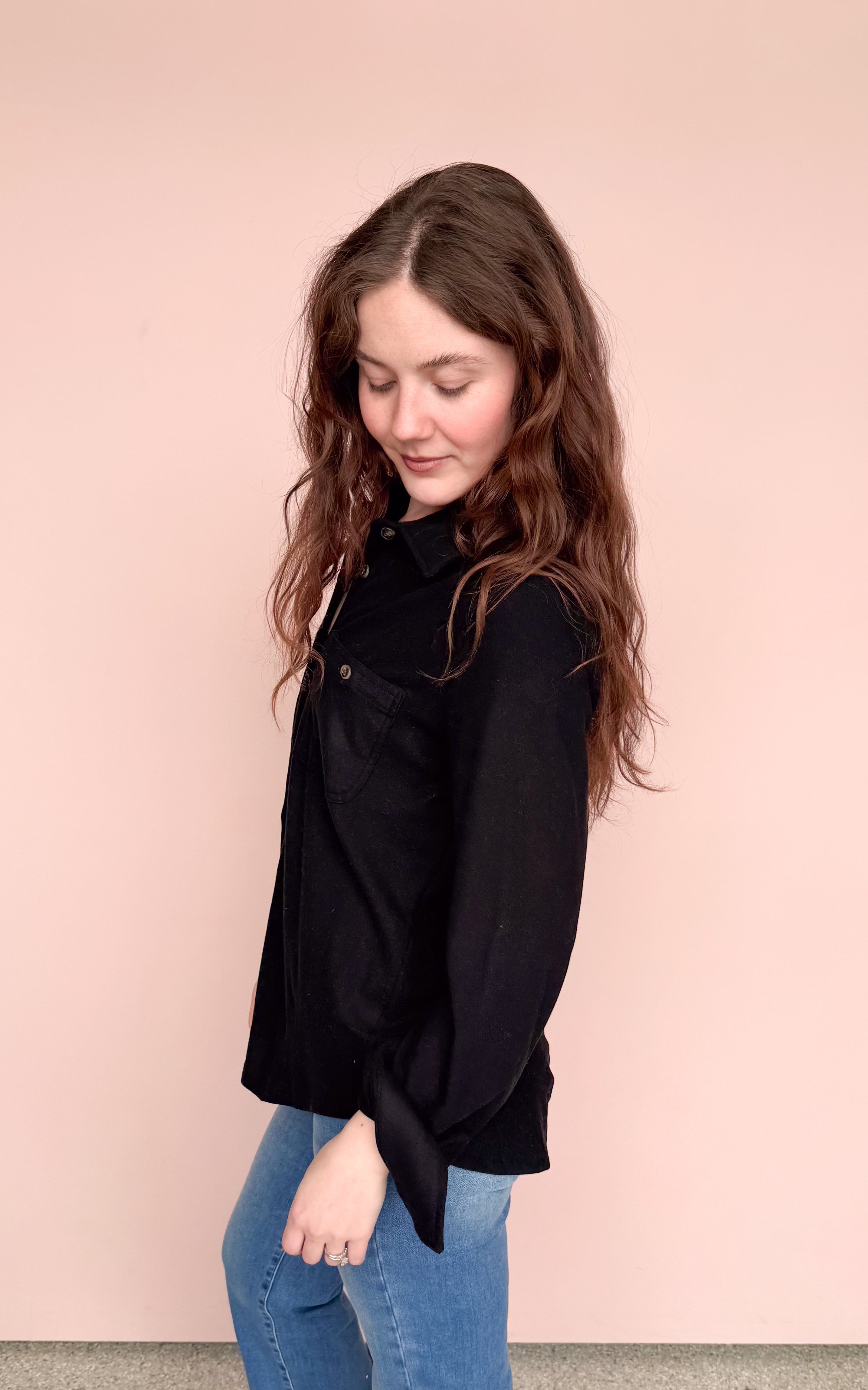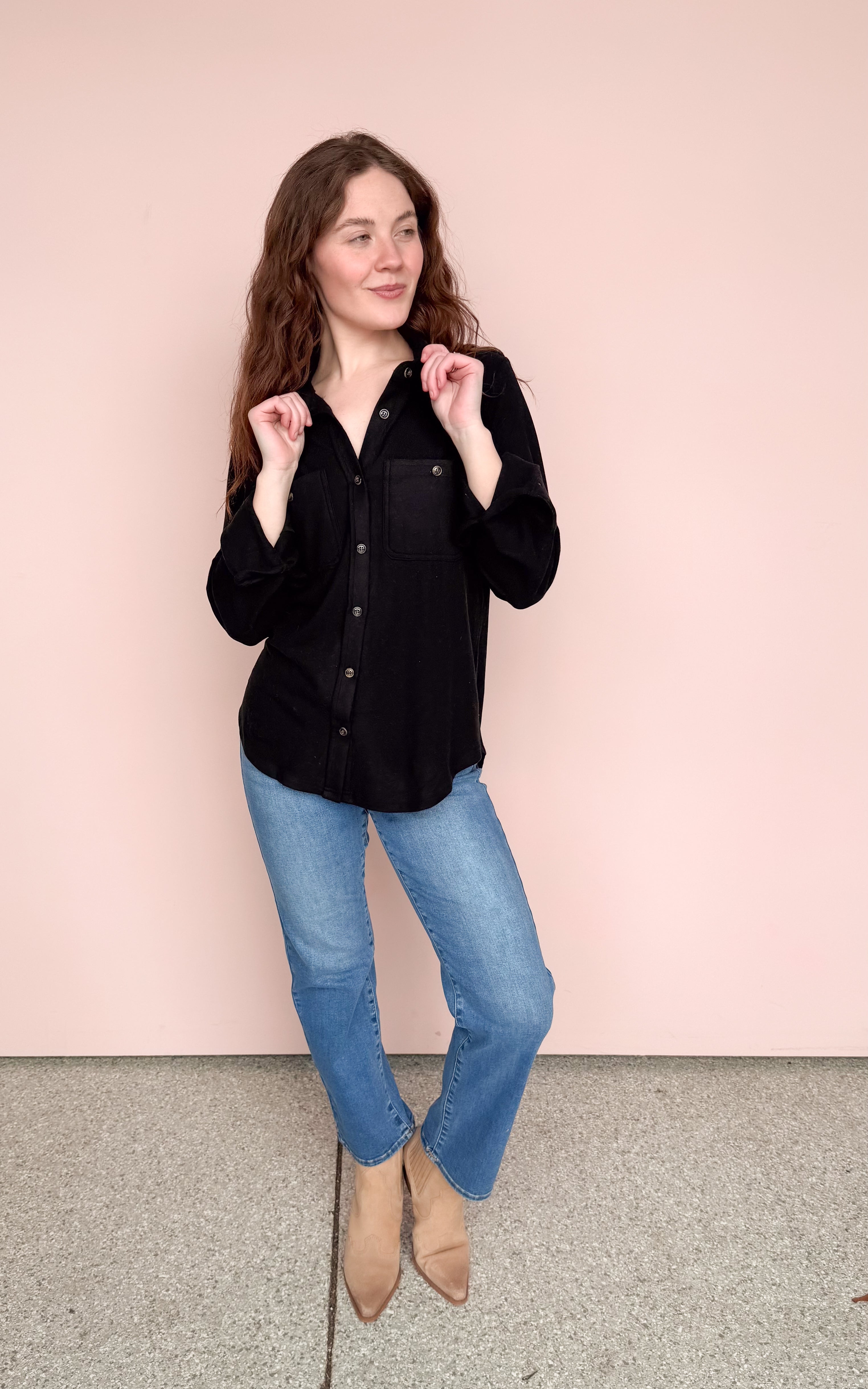 Black super soft button up top