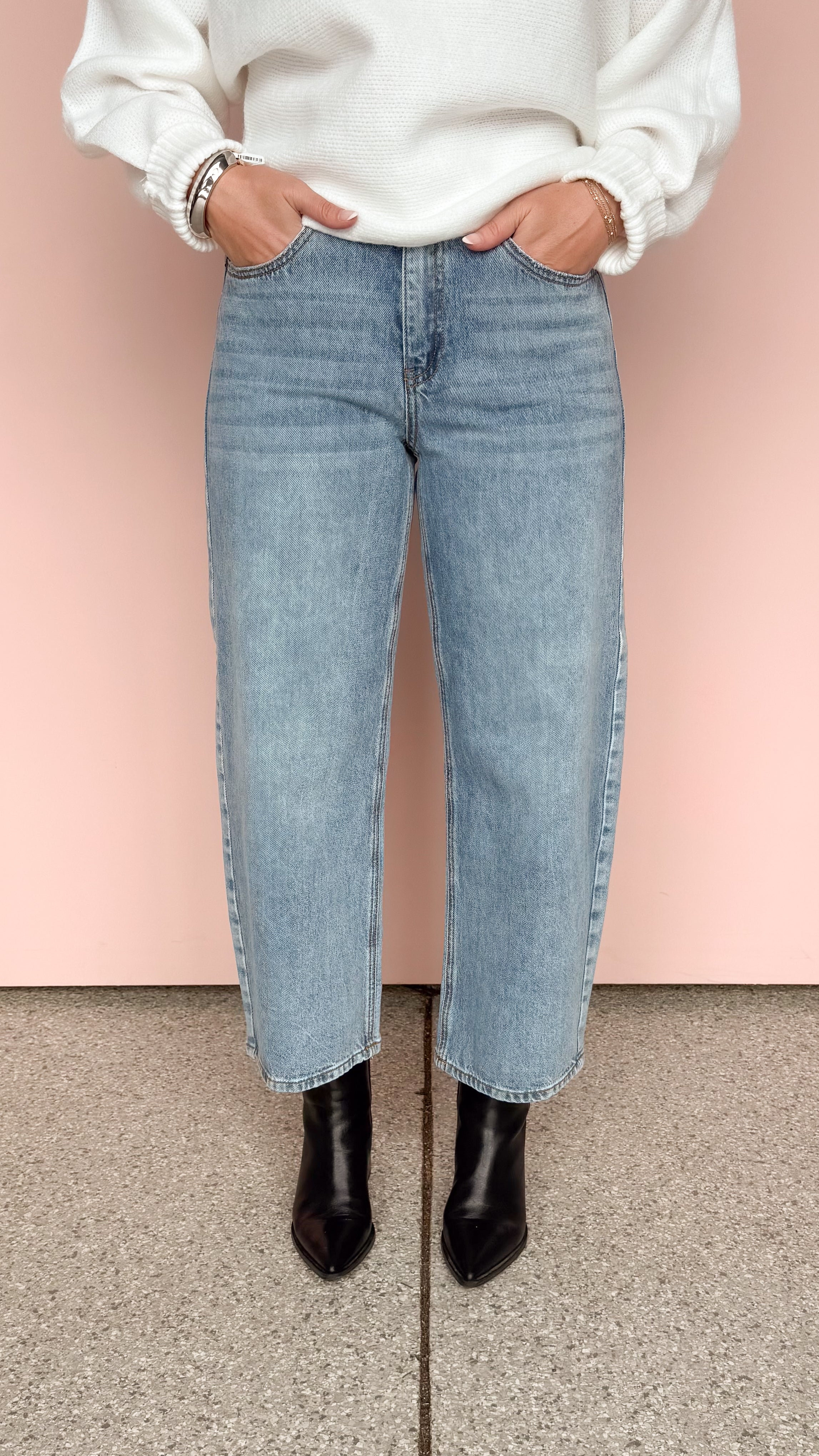 Say goodbye to skinny jeans and hello to the most comfortable trend of the season! The High Rise Barrel Jean offers vintage vibes and a relaxed fit that you'll want to live in.