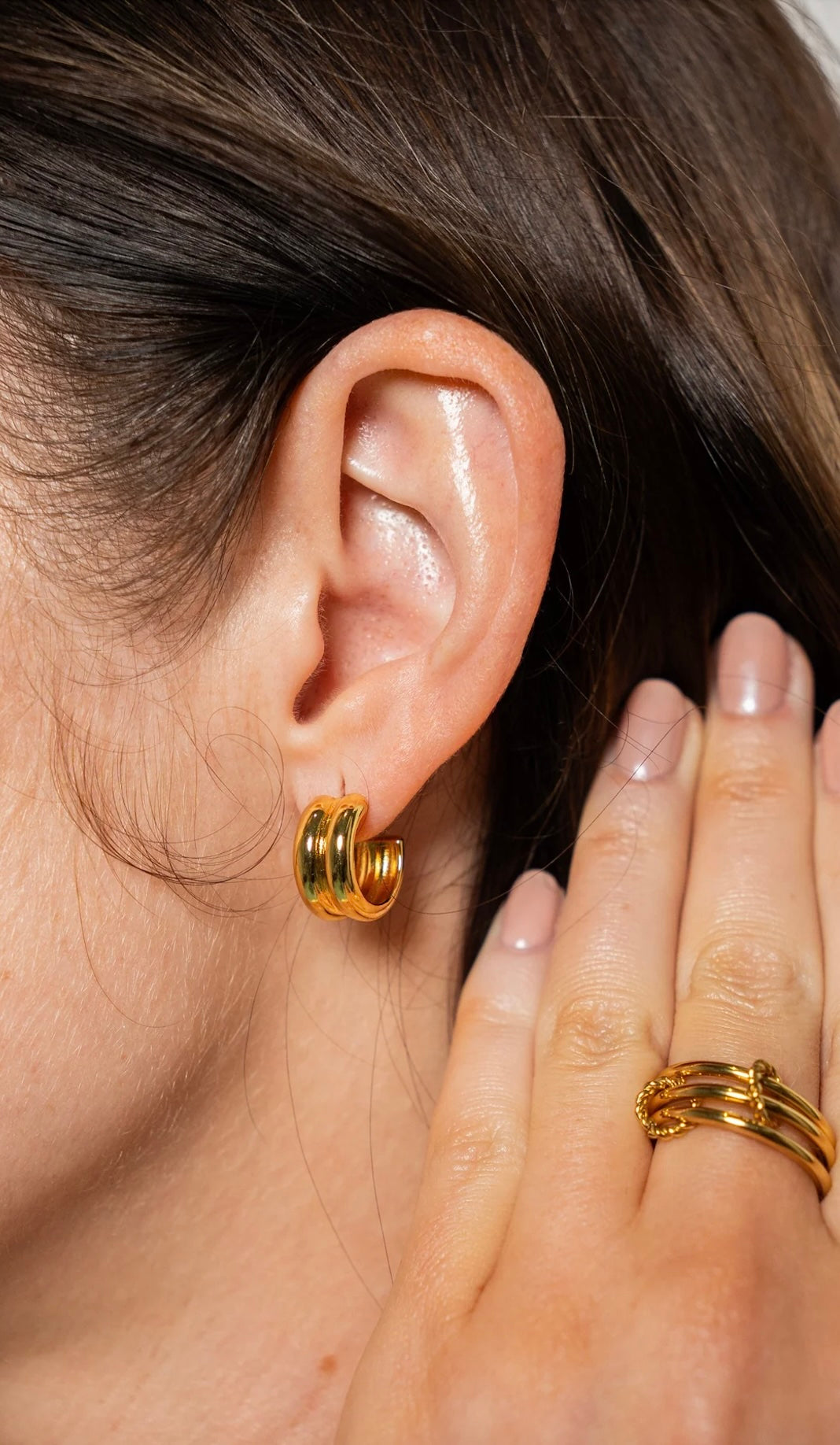 Two hoops in one lightweight design. These gold mini earrings give you a stacked look with zero effort