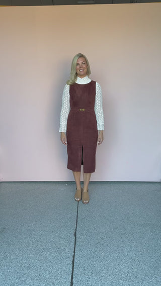 Elevate your wardrobe with our sophisticated Fall Enchantment Dress. This piece combines luxurious texture with a figure-flattering, tailored silhouette. Looks great alone or paired over our Sistine Tale Top as shown here.