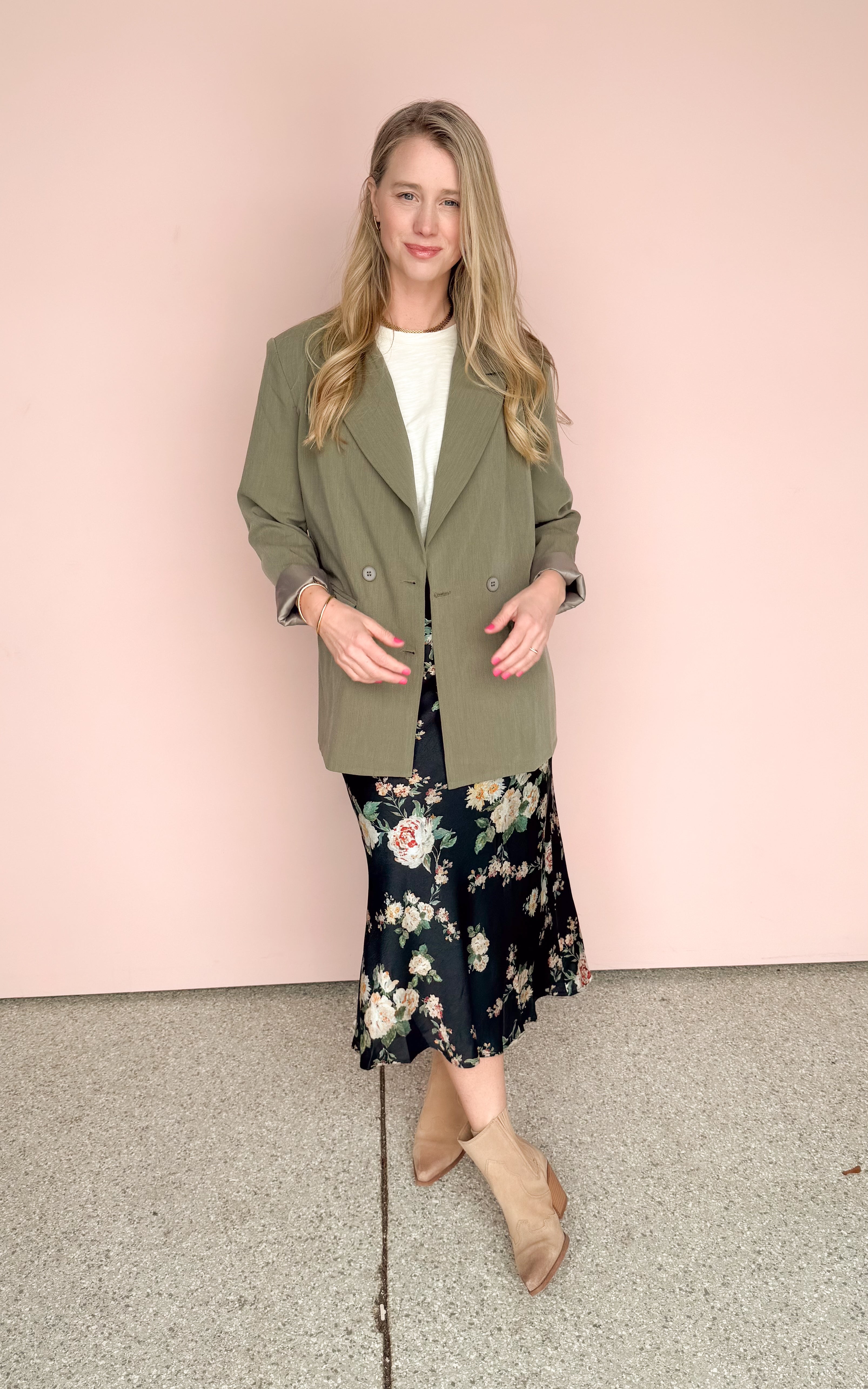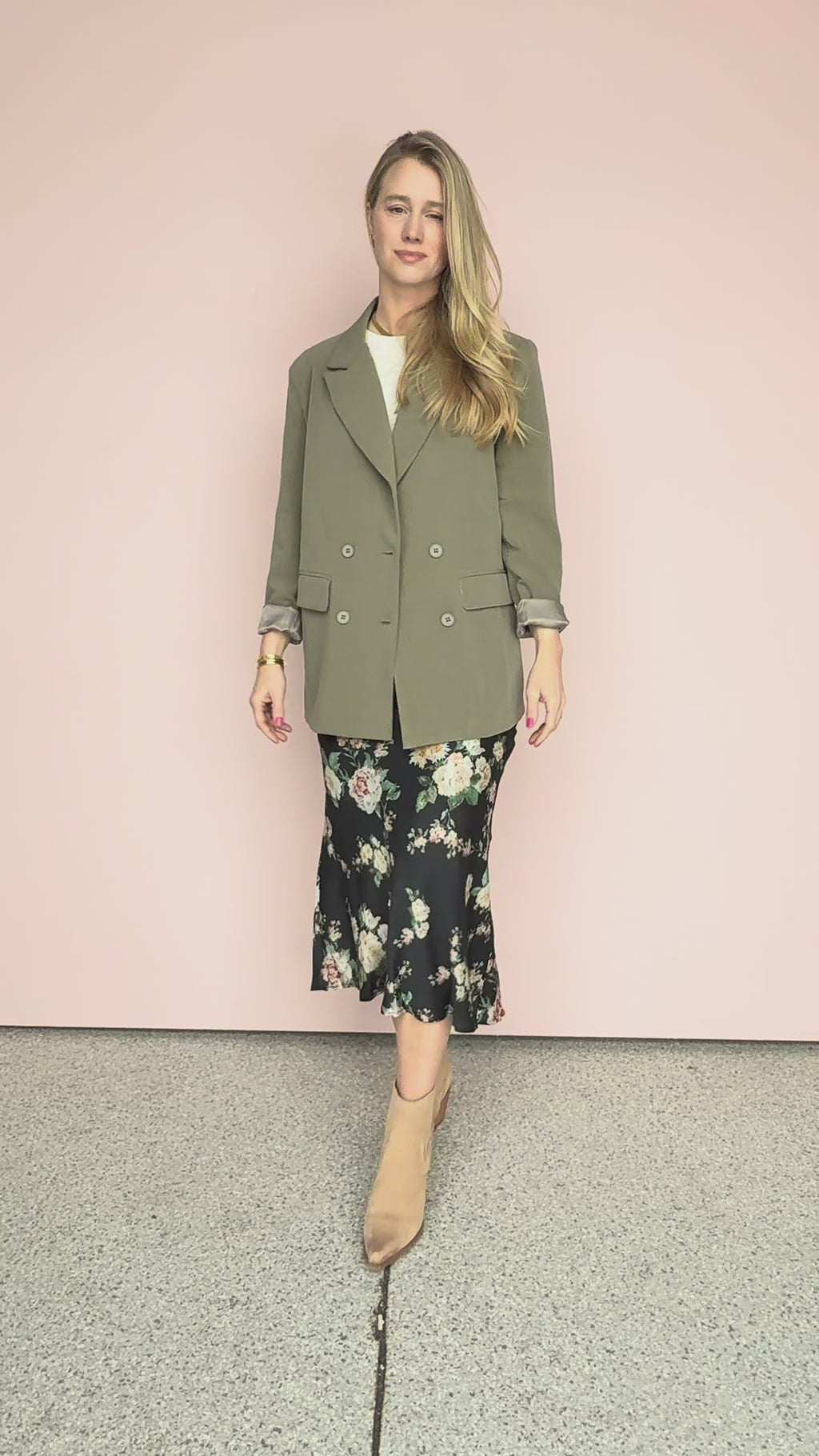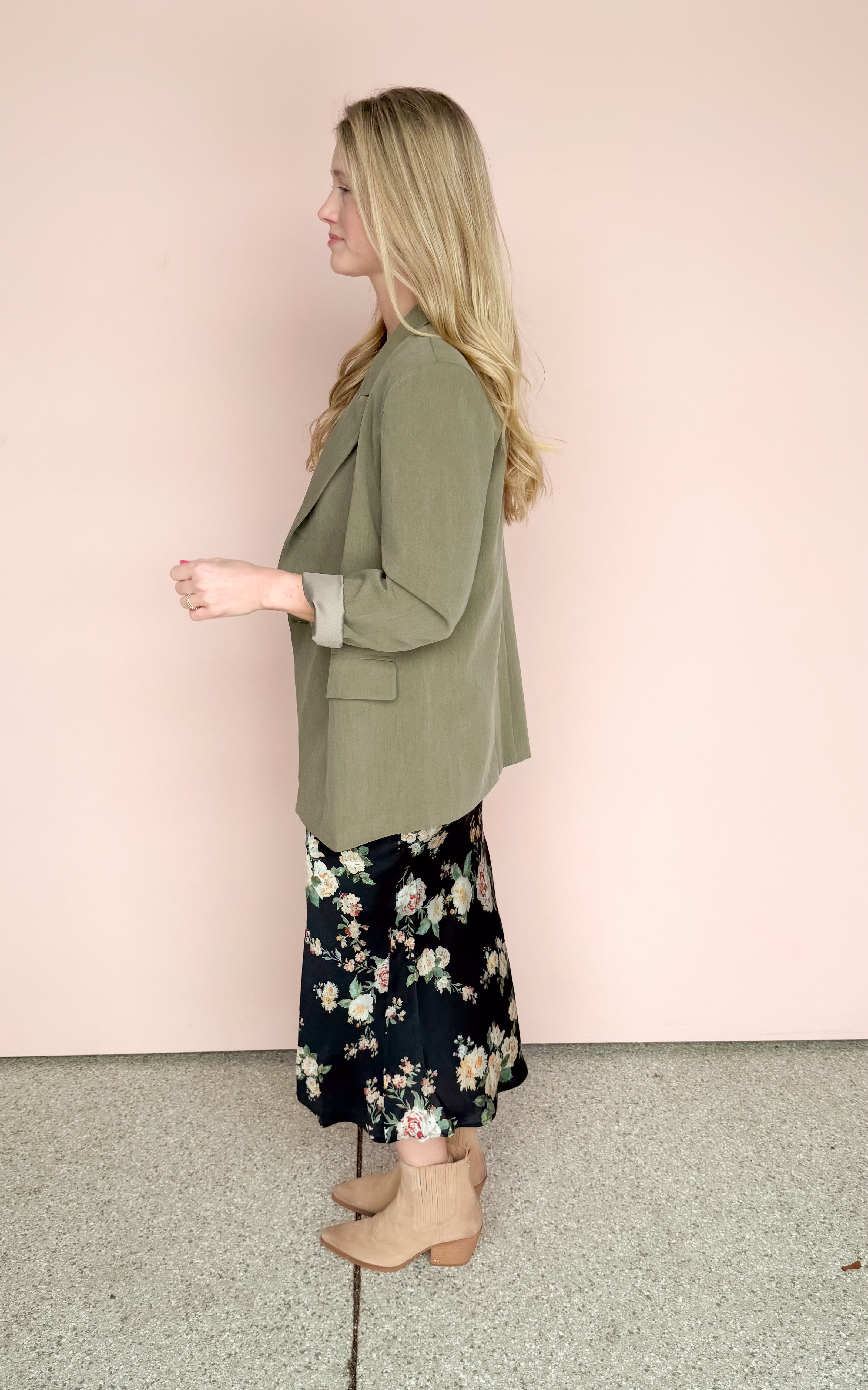 Elevate your layering game with this stunning olive-toned blazer that perfectly bridges the gap between classic tailoring and modern oversized chic. Whether you're heading to a creative meeting or a weekend brunch, its earthy hue and structured silhouette make it an instant wardrobe standout.