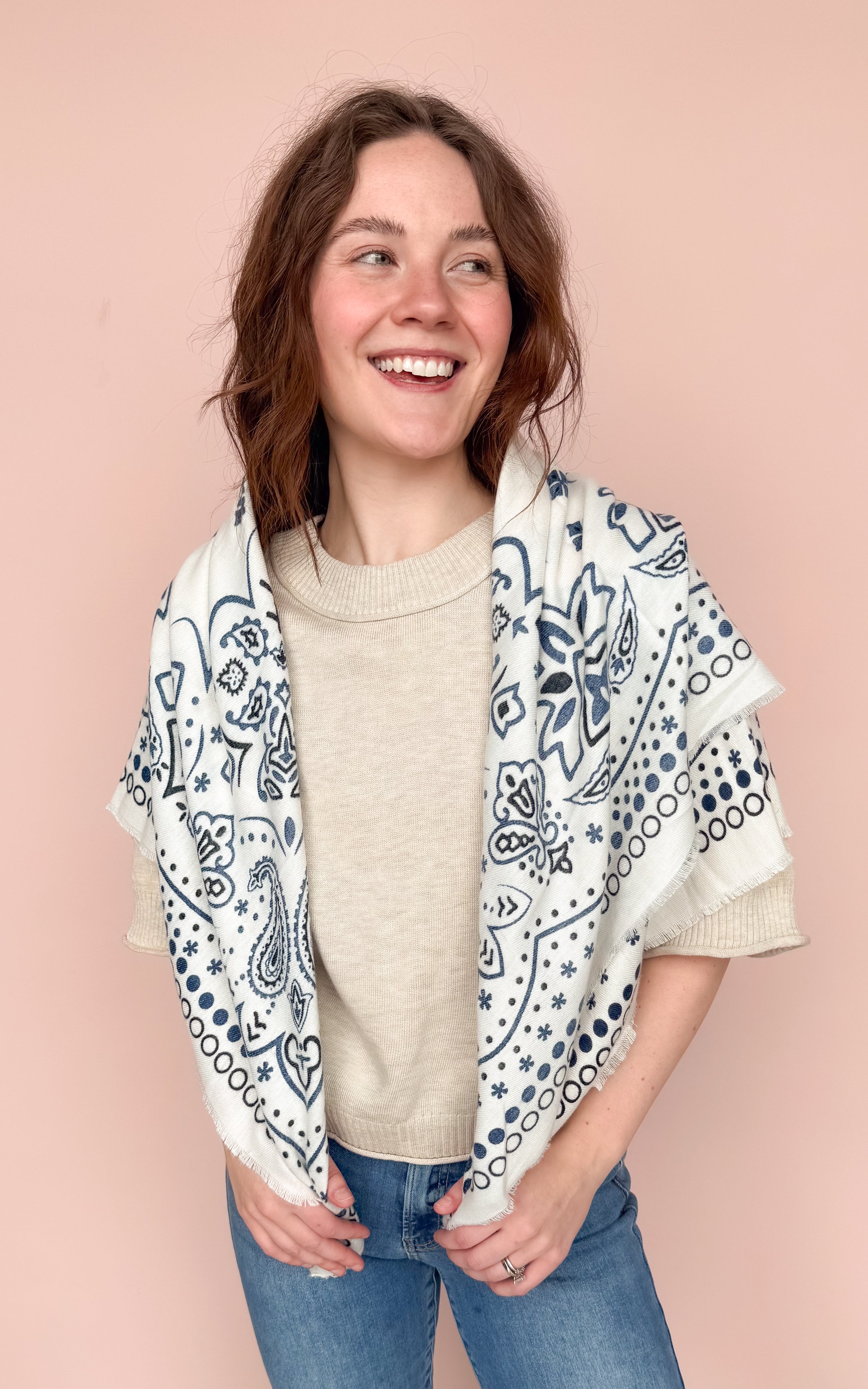 This luxurious oversized bandana scarf is your ultimate outfit maker—super on-trend and endlessly versatile! Wear as a neck scarf, cozy shawl, chic hair tie, or endless styling options to elevate any look