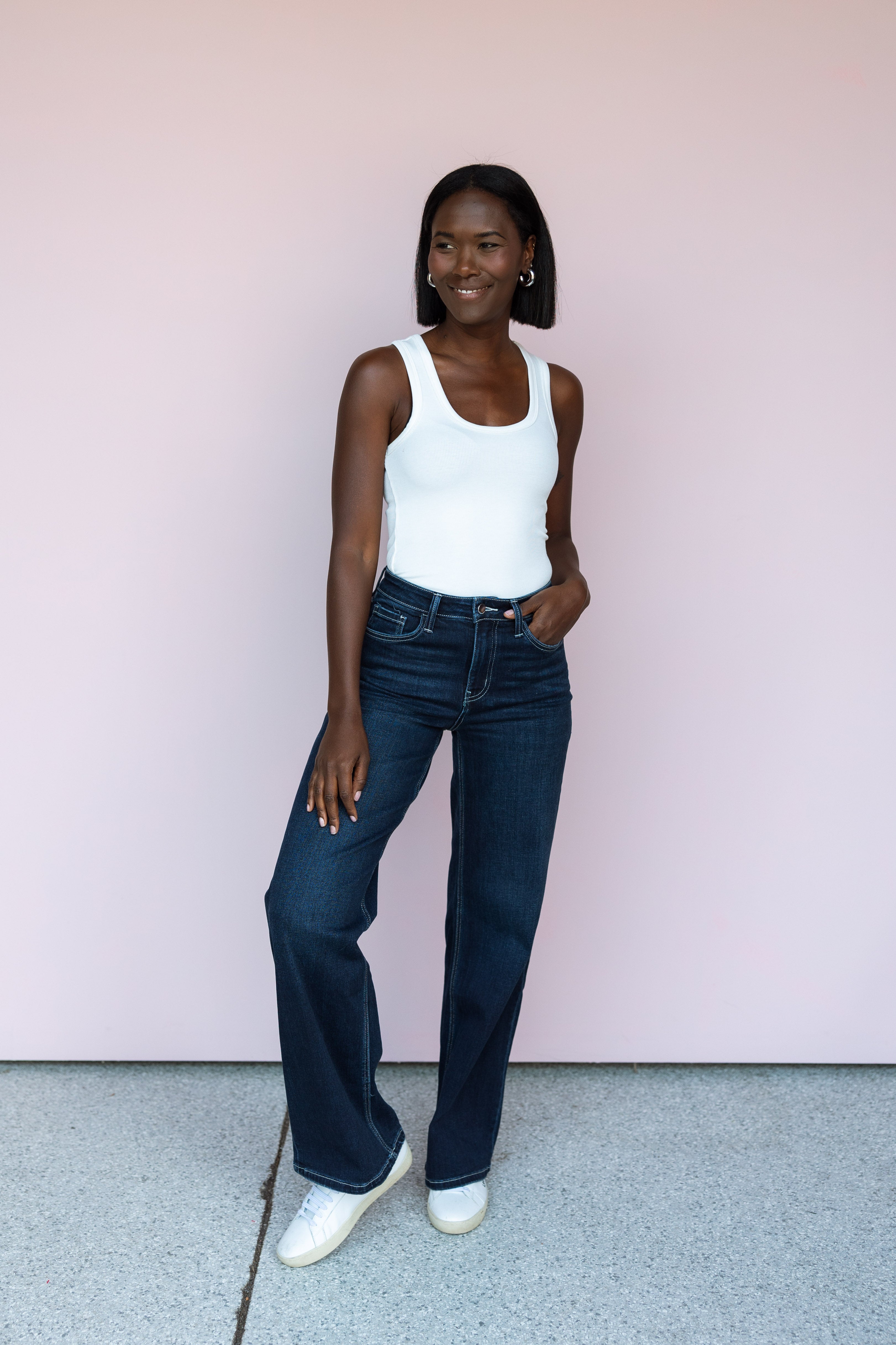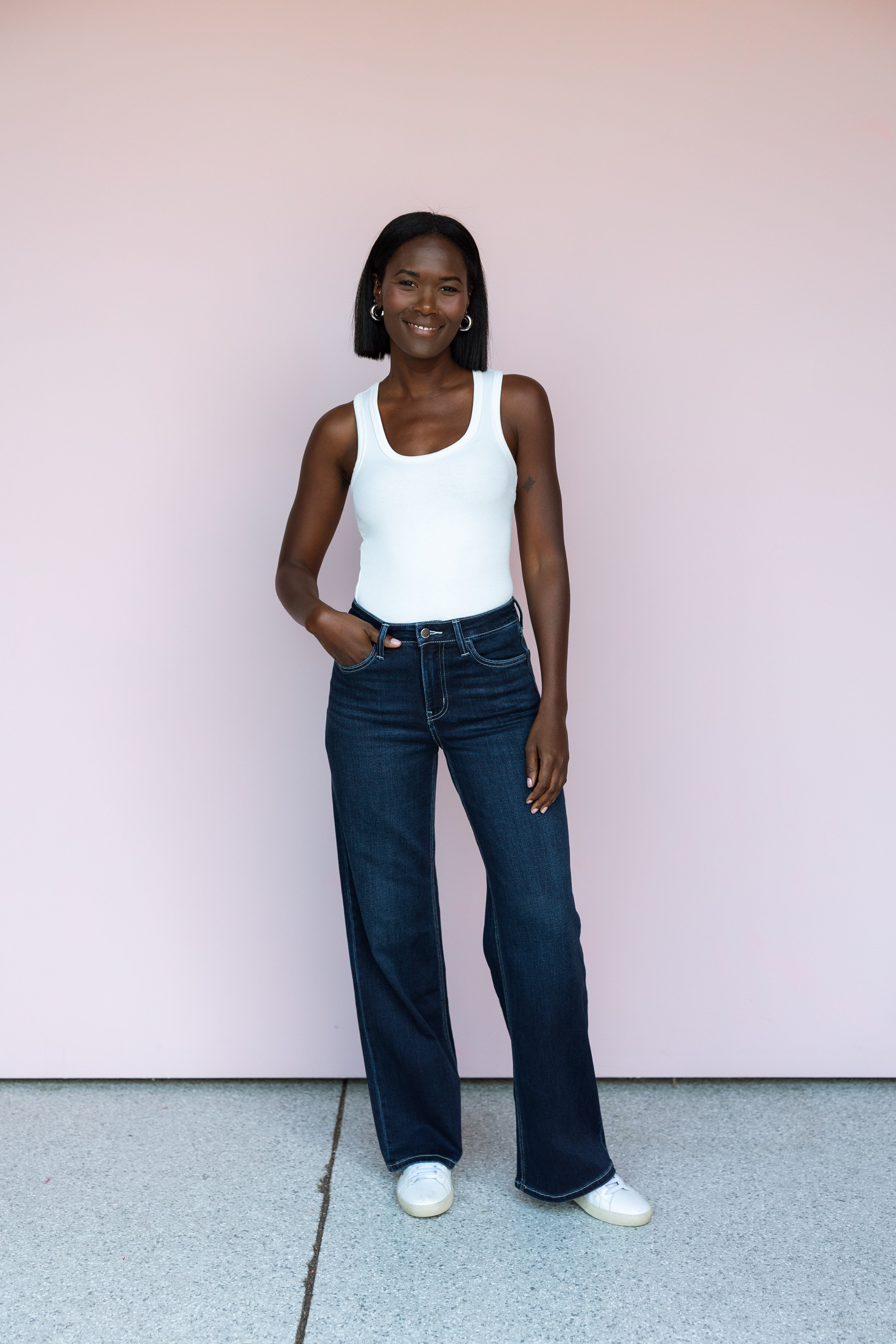 Embrace a sophisticated and comfortable silhouette with our Harmonious light wide leg jean. Designed to lengthen your legs and elevate your everyday style, these jeans are a modern denim essential.