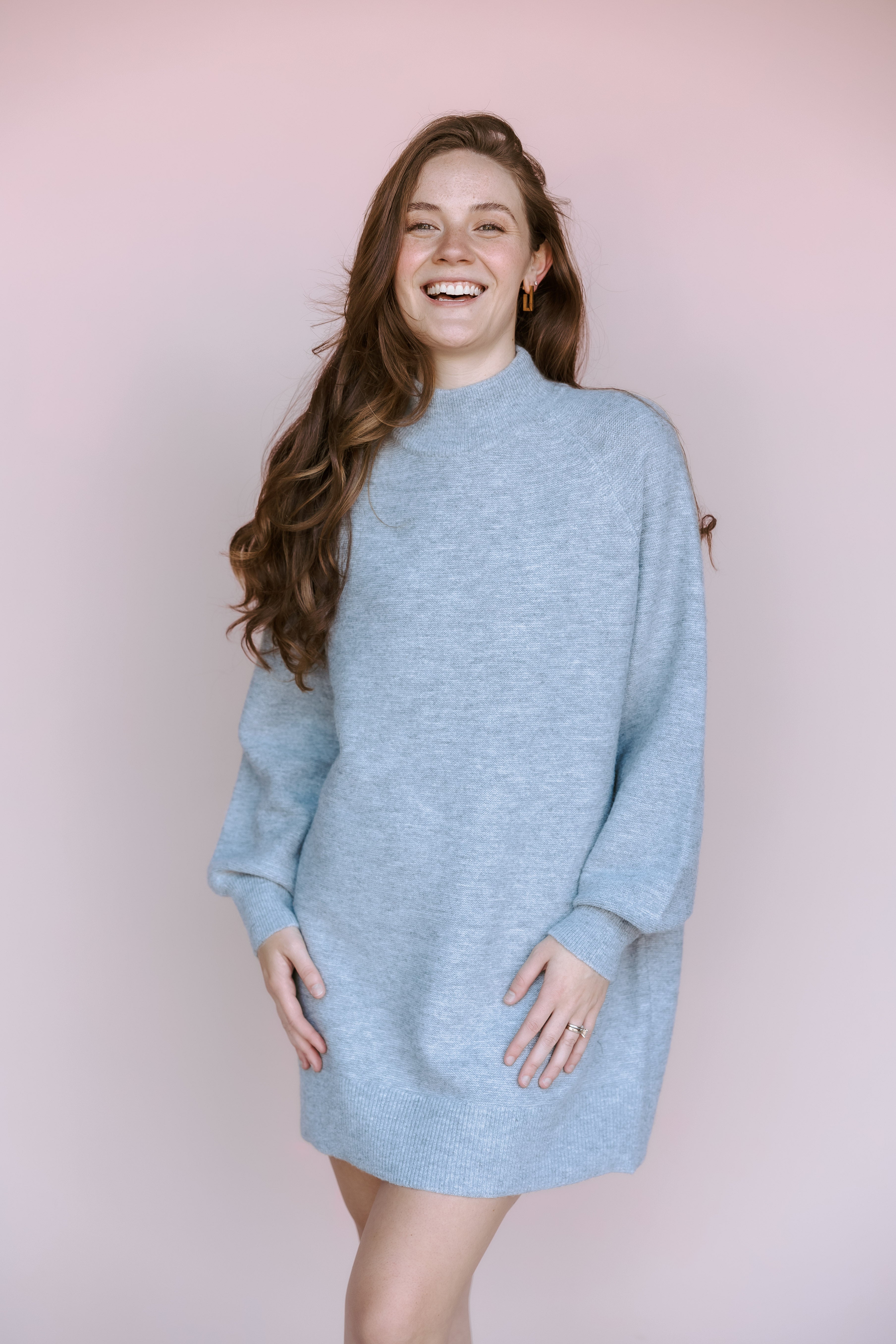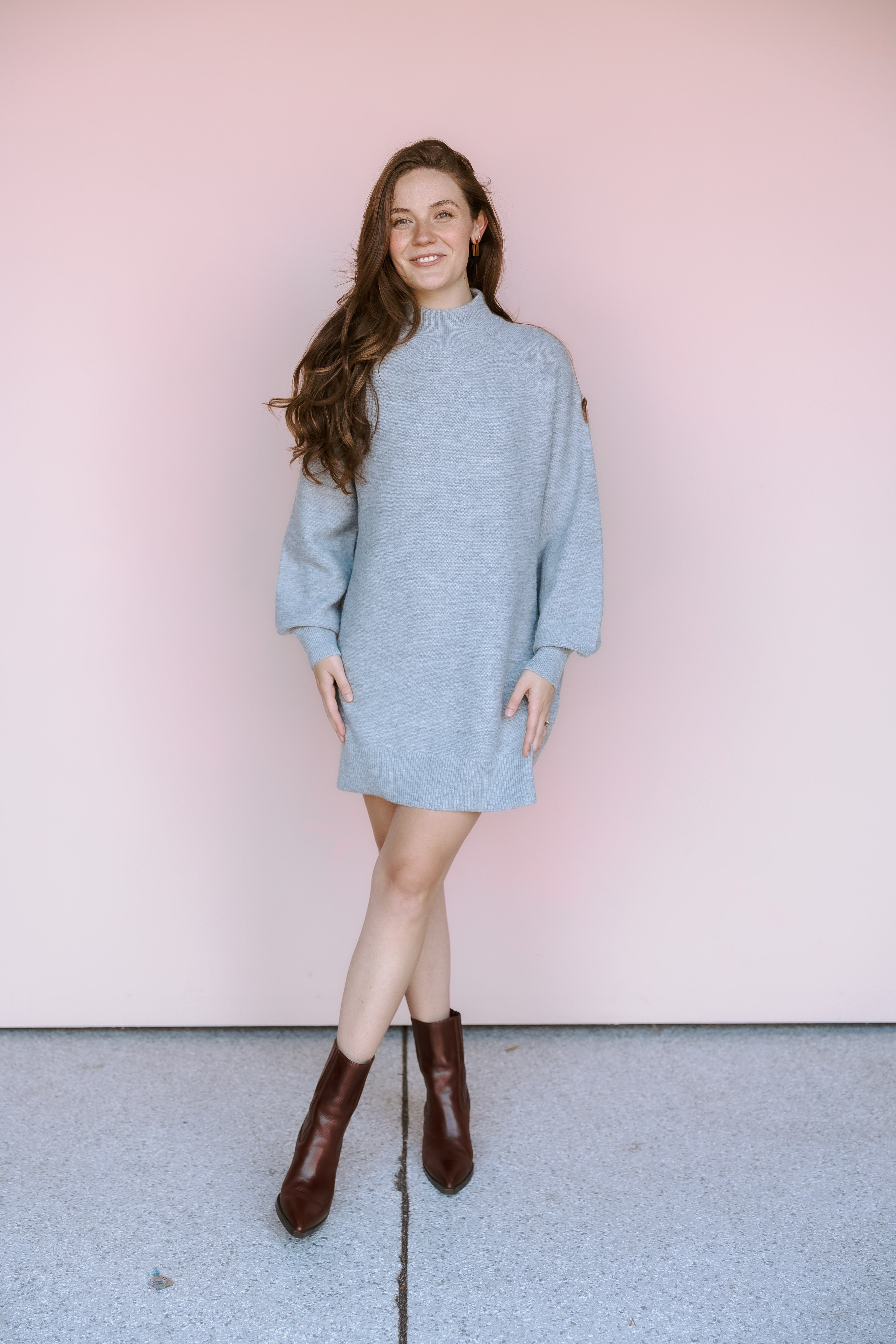The Grey Lena Sweater is the ultimate cozy staple, offering a comfortable, elongated fit in a chic, versatile color.