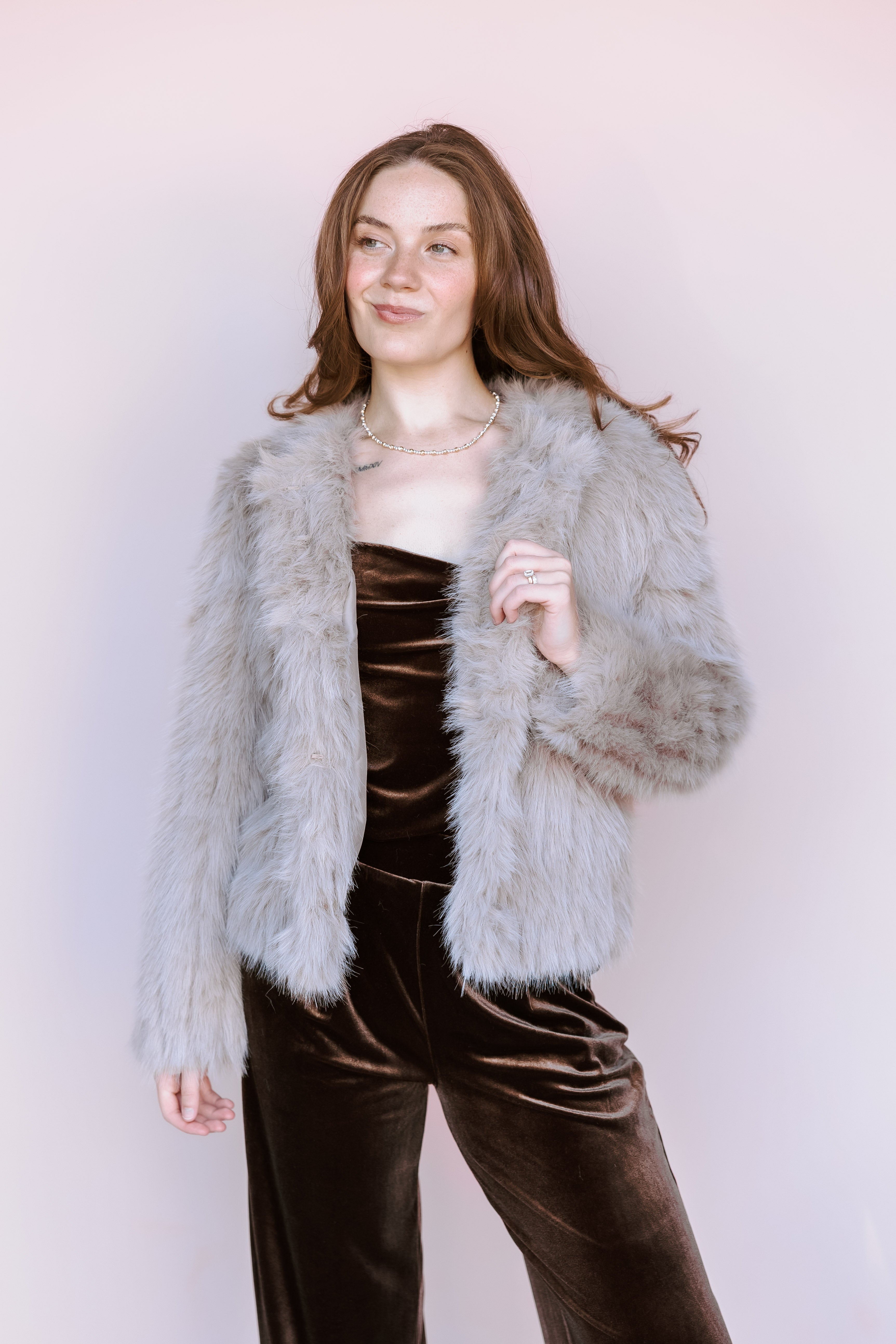 Indulge in cozy glamour with our Uma Jacket. This statement piece is the ultimate luxurious layer for adding texture and warmth to your evening or cool-weather wardrobe.-
