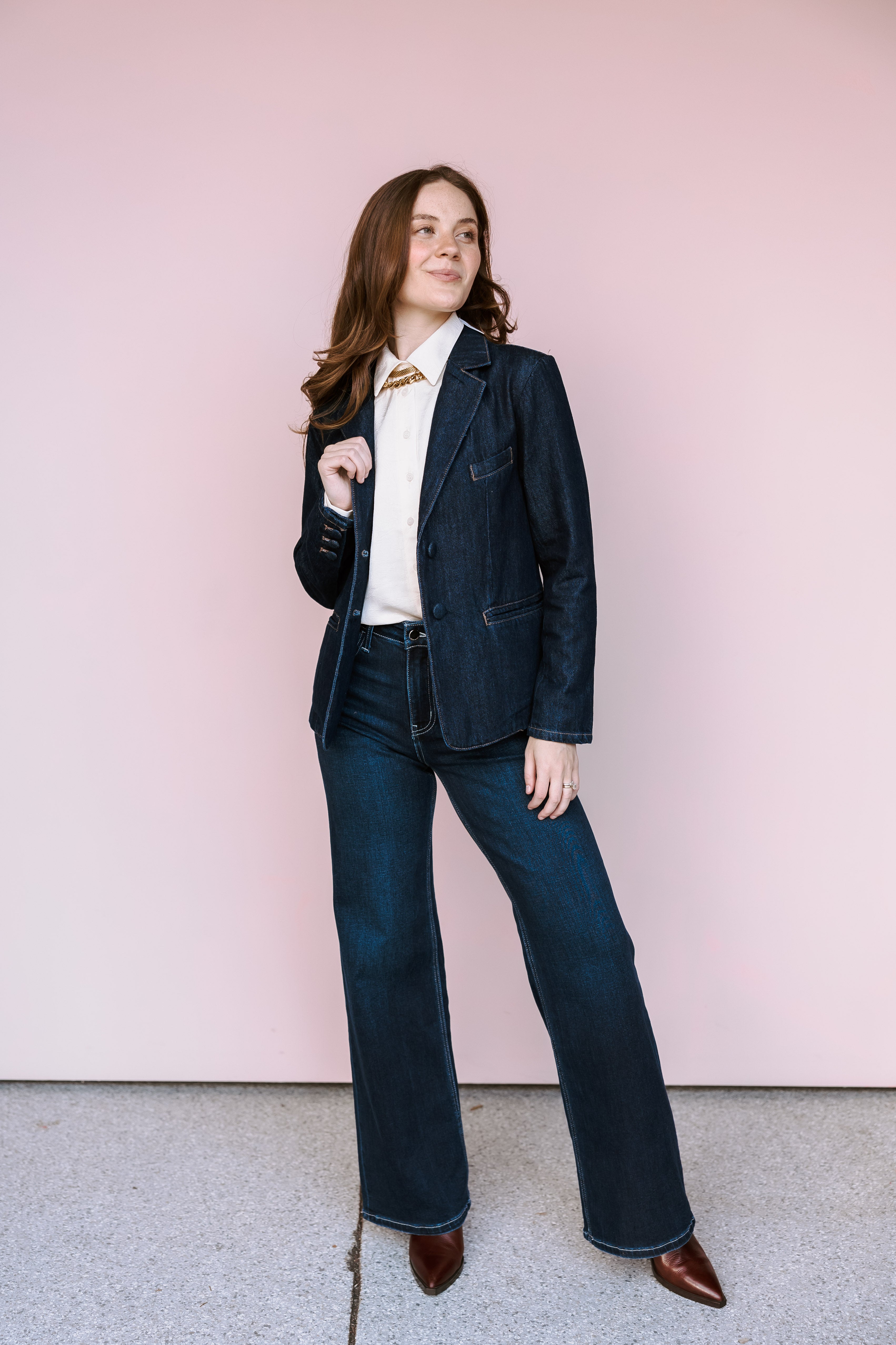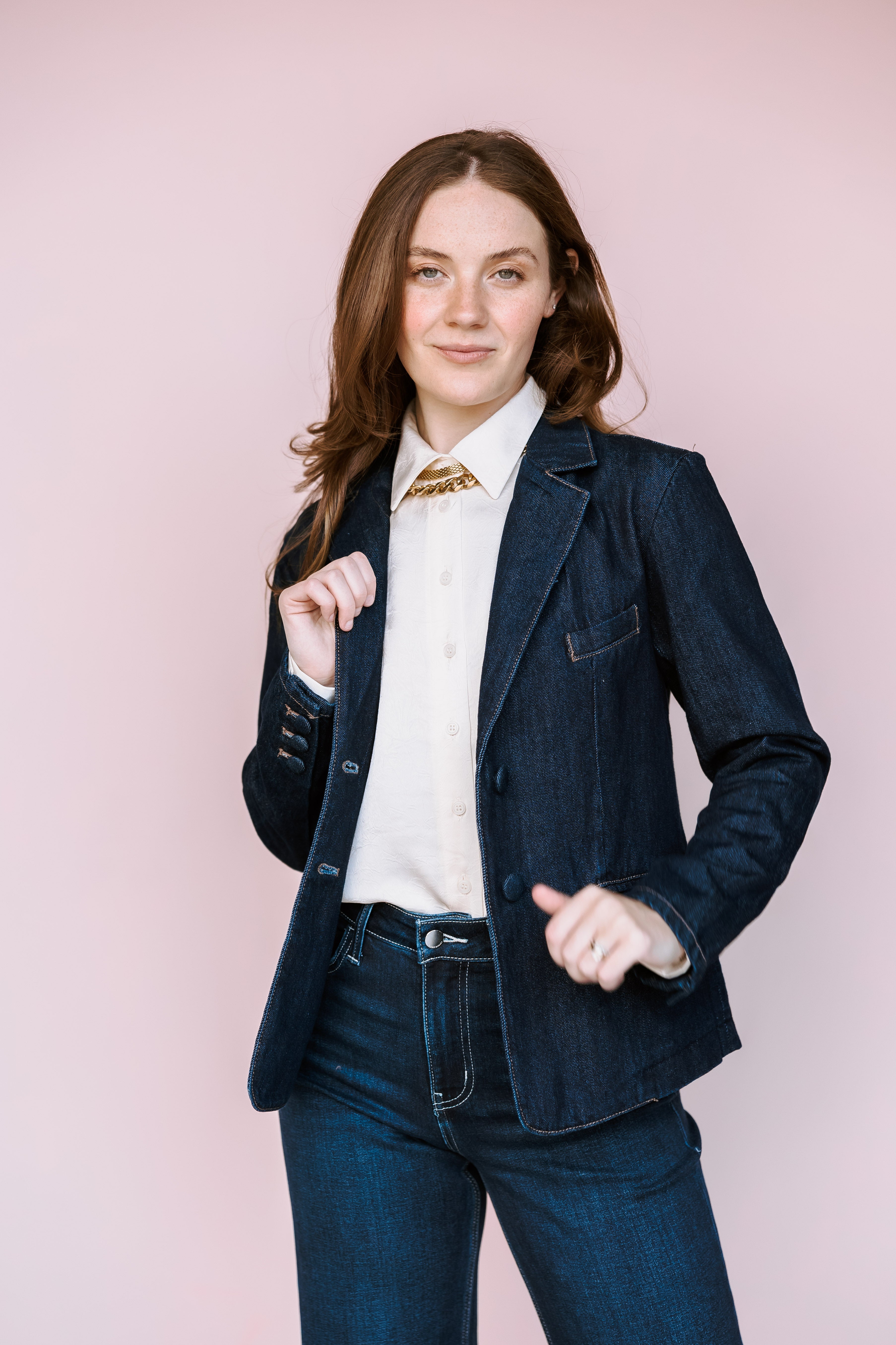 • Tailored jean blazer