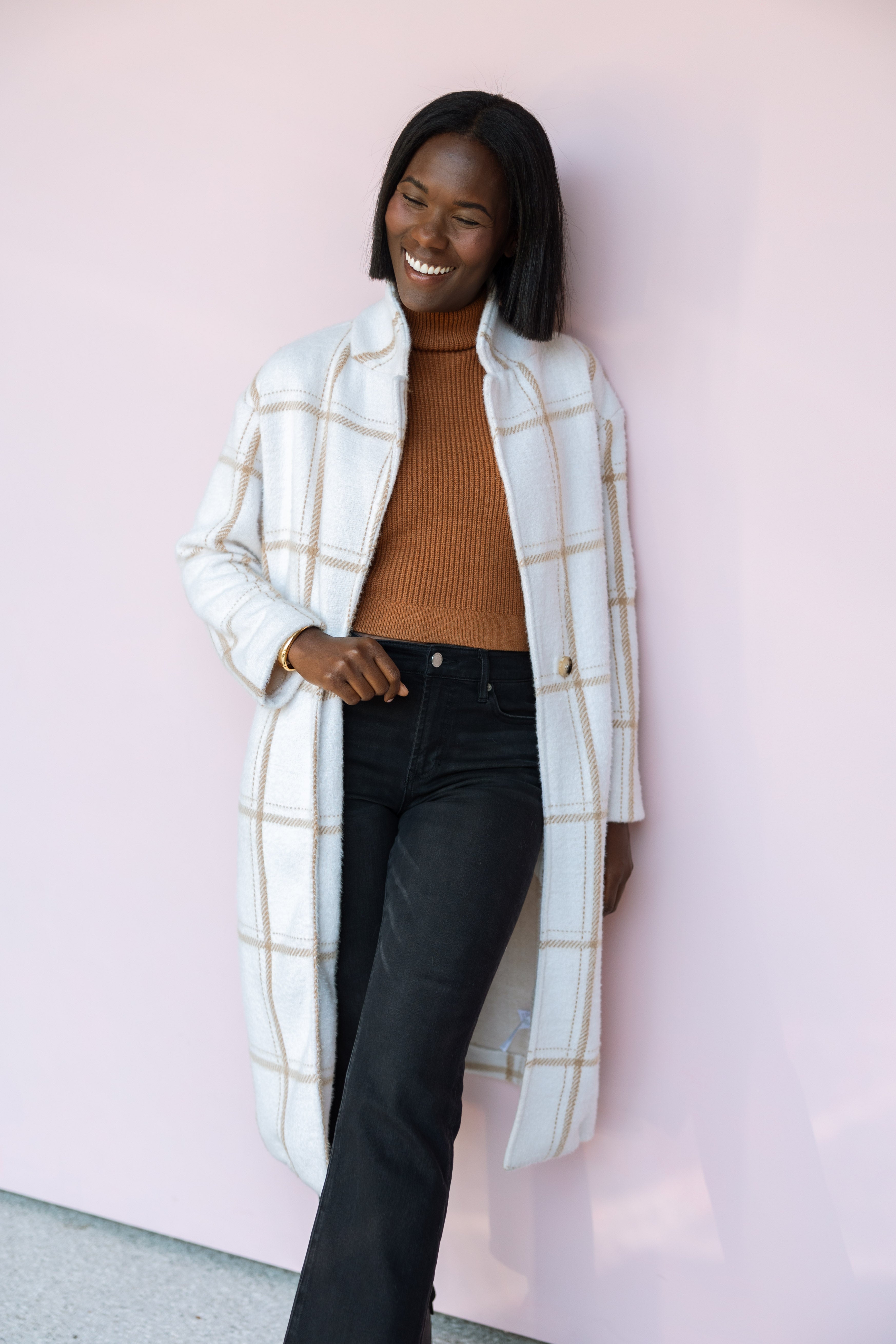 Elevate your outerwear game with this effortlessly chic longline coat featuring a classic plaid pattern in soft, neutral tones. The relaxed silhouette allows for comfortable layering, while the single-button front closure and notched collar add a touch of tailored elegance.