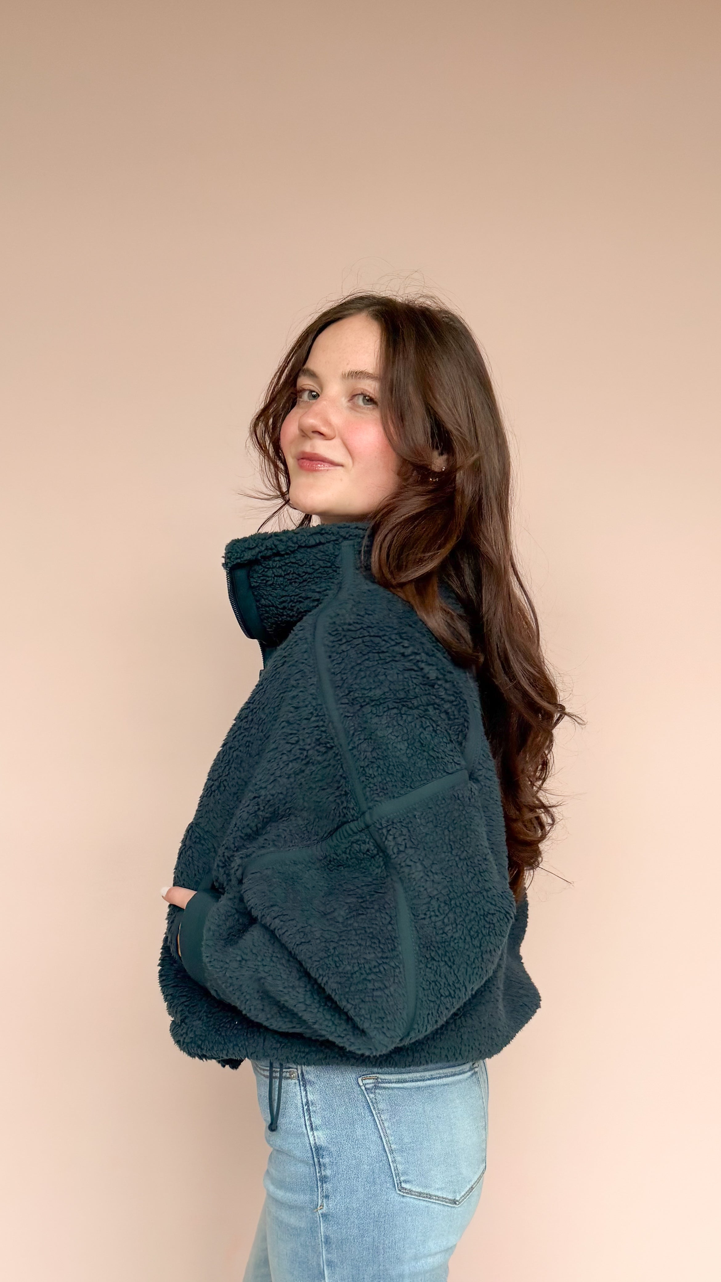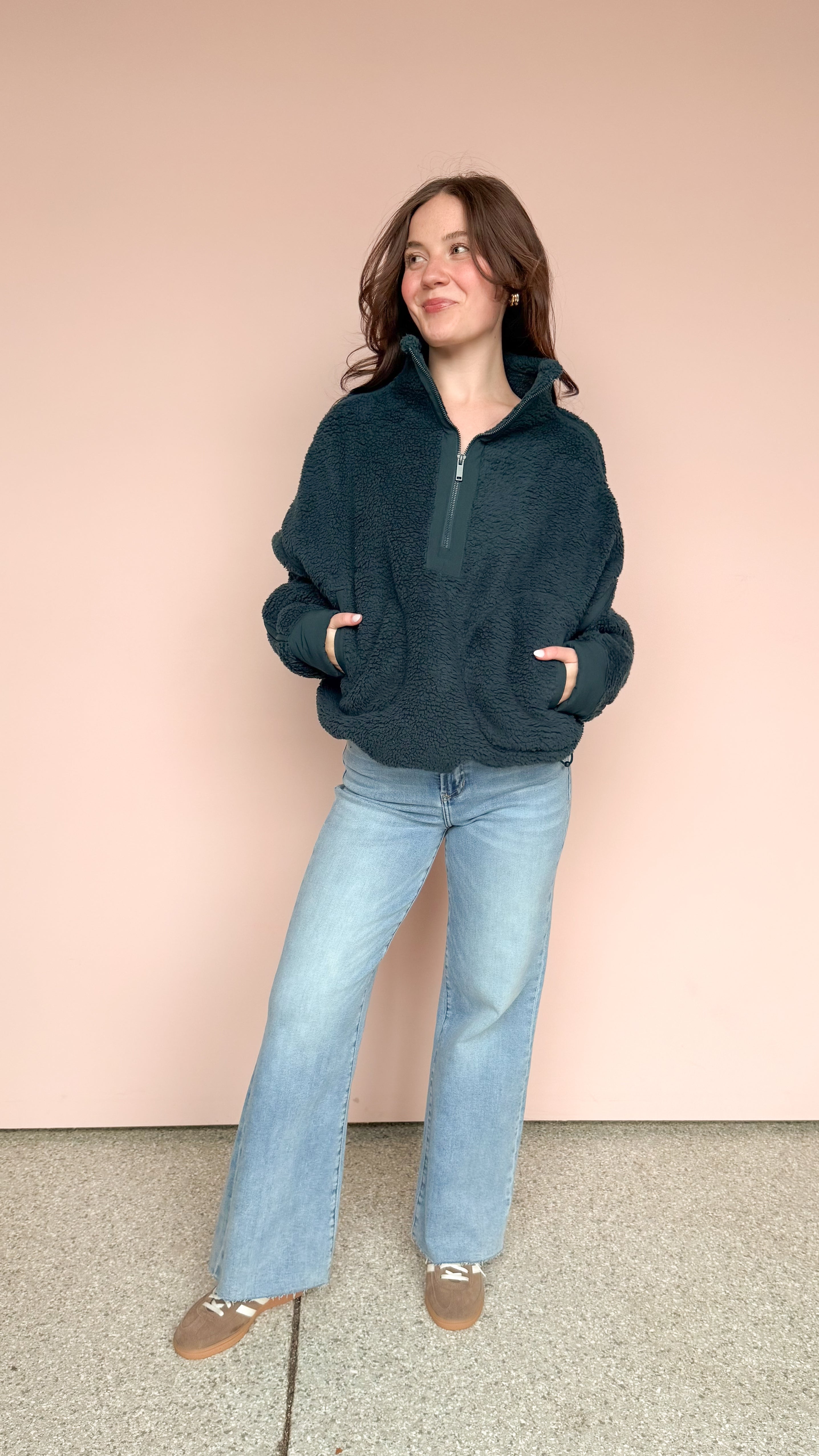 Cuddle up in this incredibly cozy Lenny Pullover in a rich, gorgeous shade of deep teal green, it's like wearing a chic, fashionable cloud.