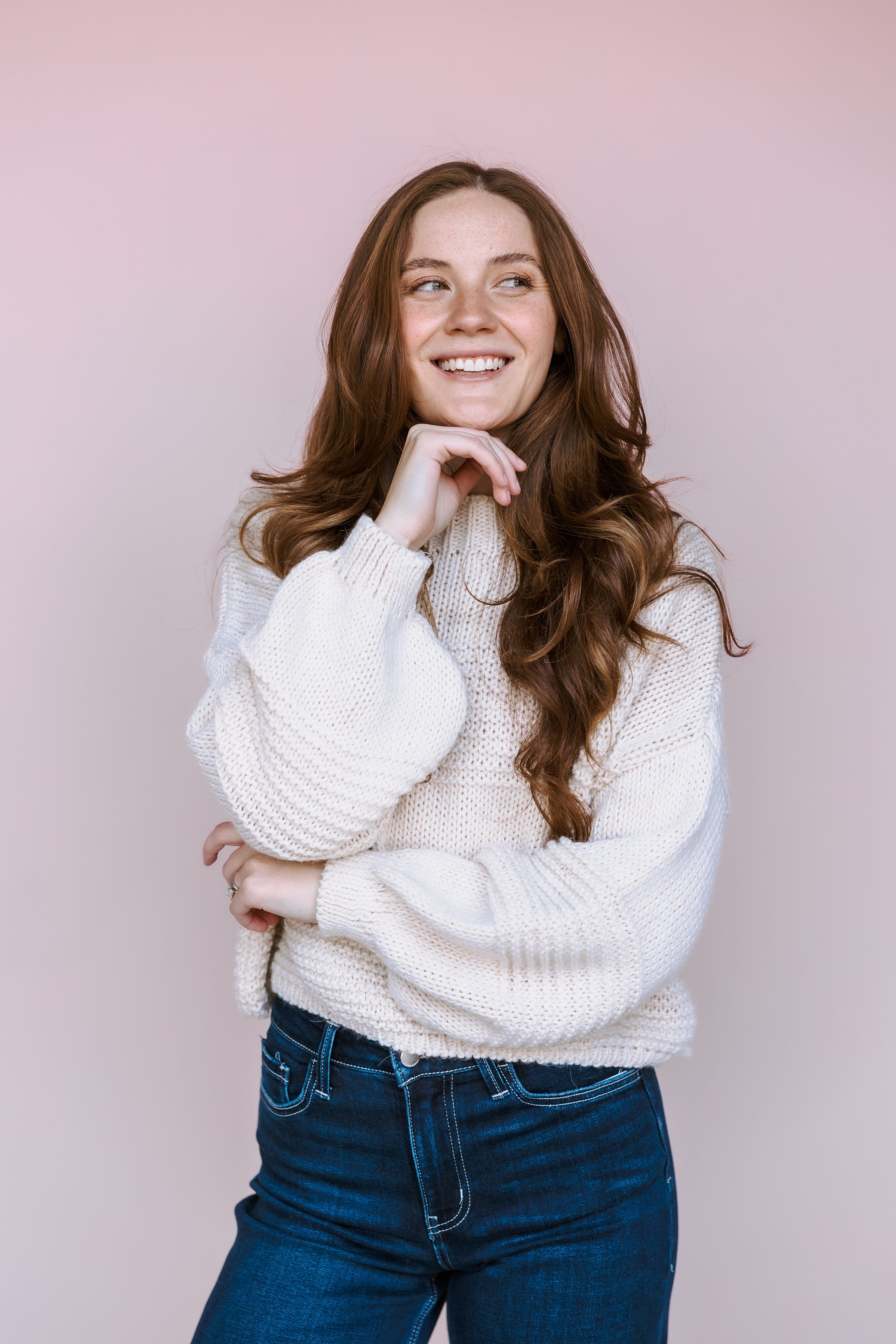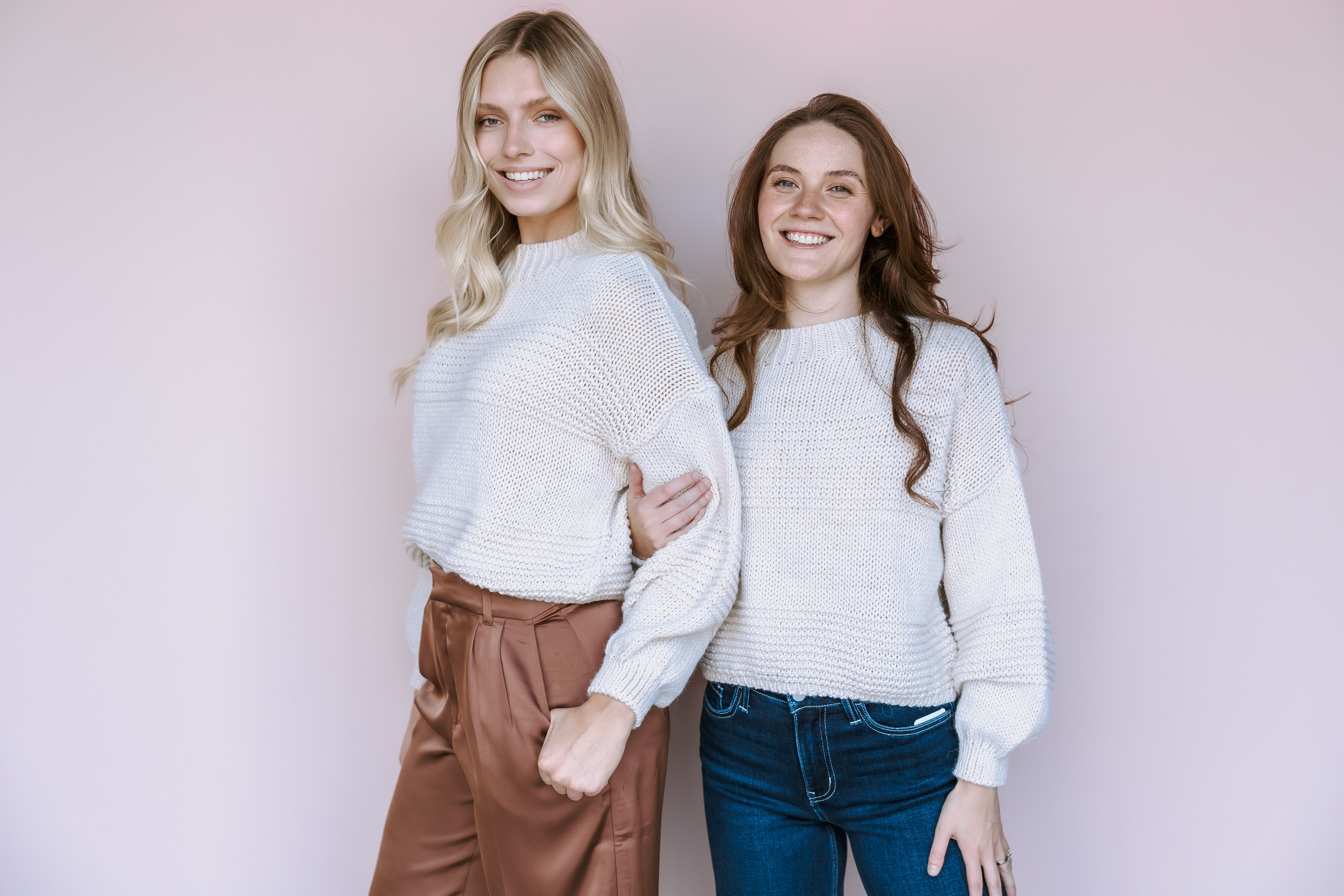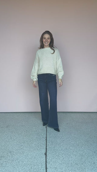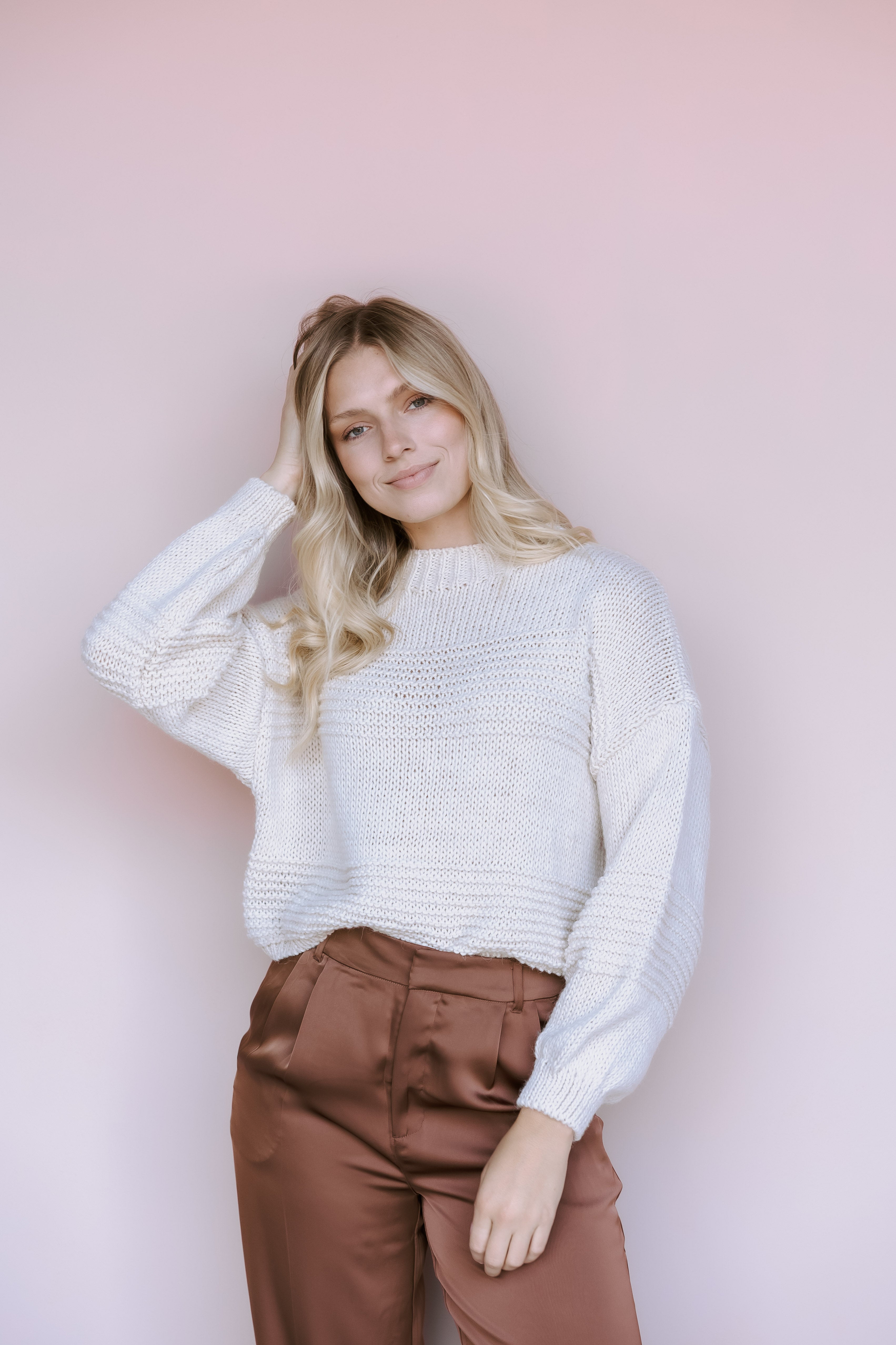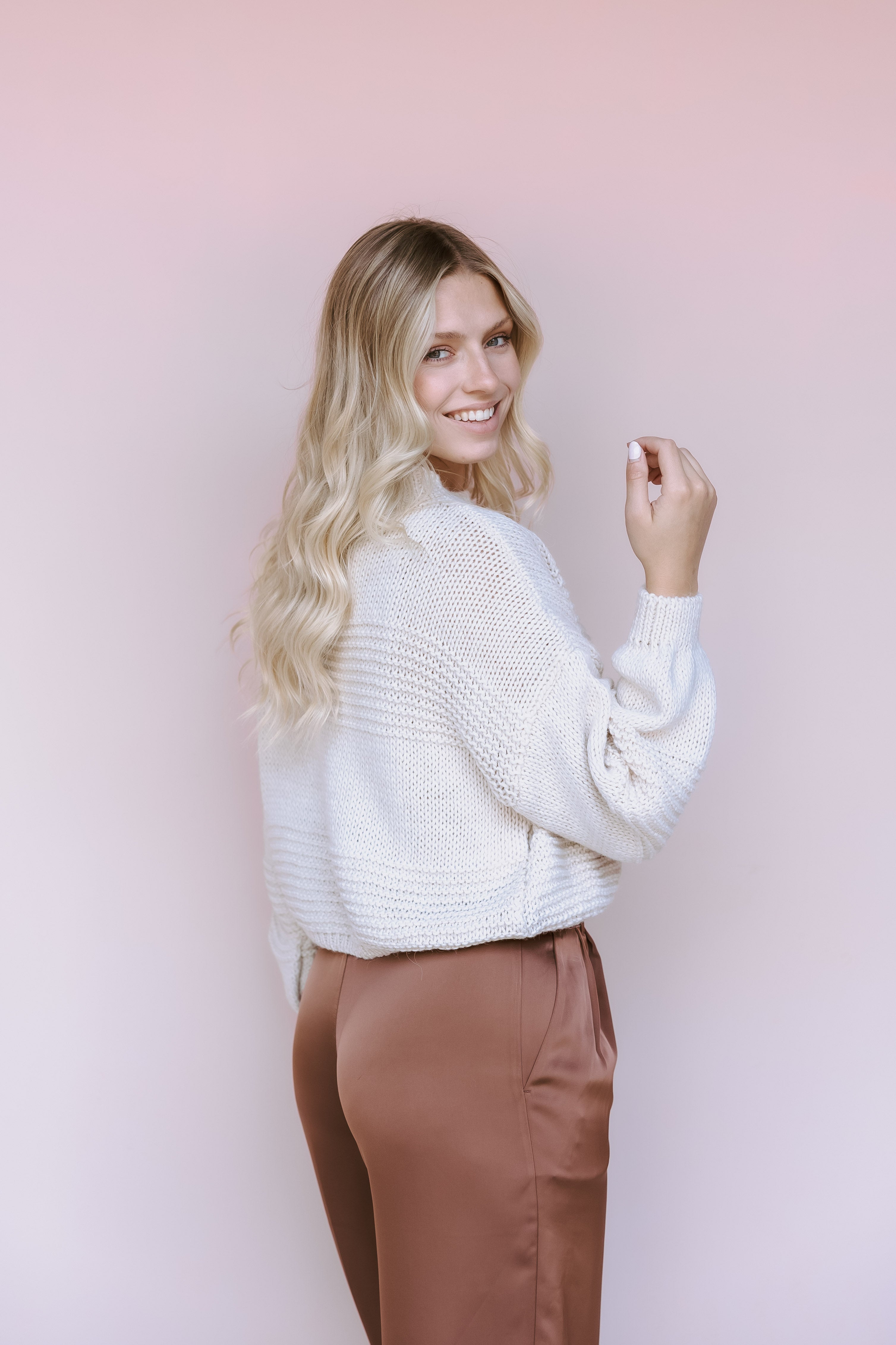 Curl up in comfort with this chic Eliza Sweater featuring a relaxed fit and subtle balloon sleeves. The versatile color makes it an essential piece for effortless layering over your favorite denim this season.