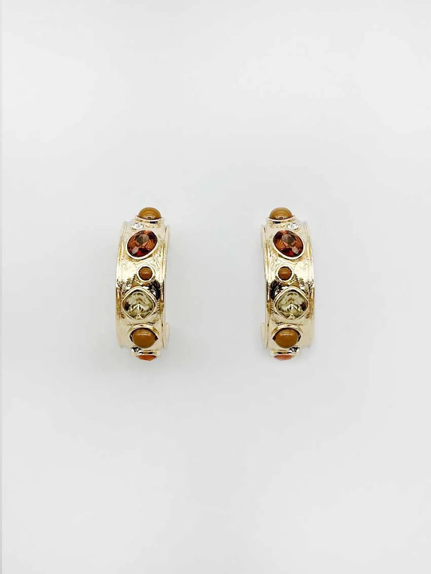 Classic meets modern with these gold hammered hoops — designed with colorful stone accents that add just the right touch of sparkle. The textured finish gives them a chic, artisanal feel, while the vibrant stones make each pair pop.