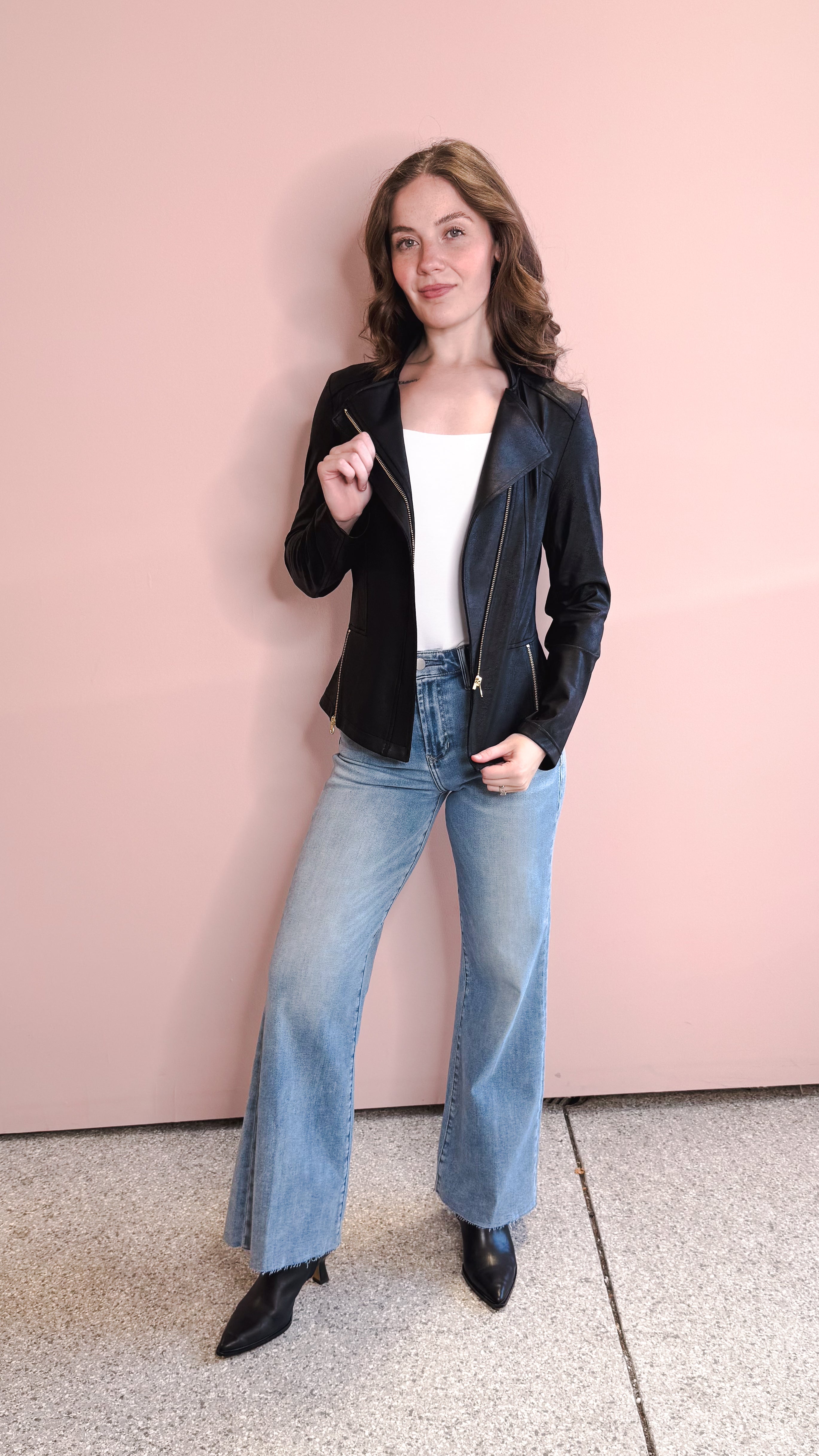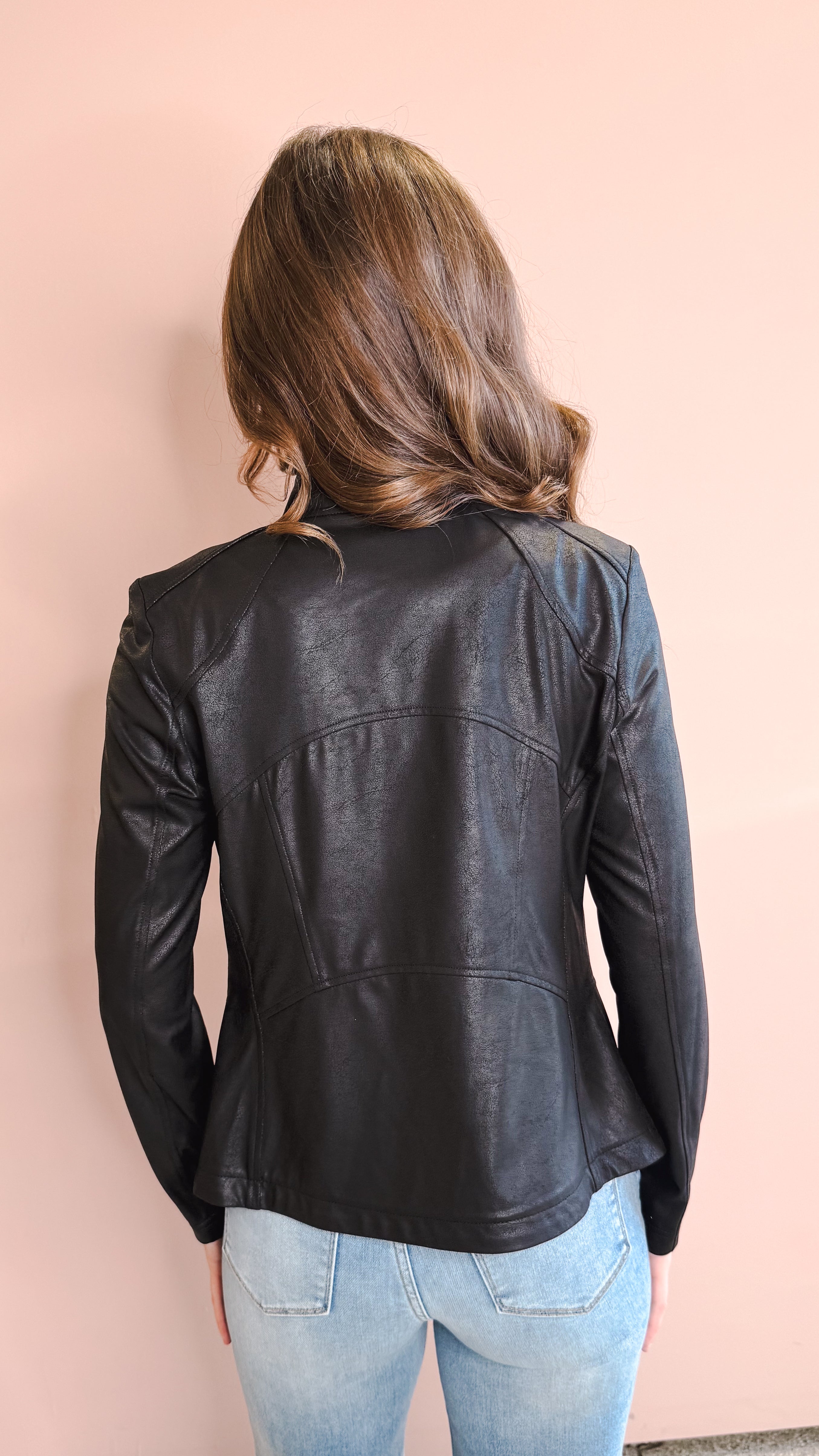 Meet the jacket that redefines edgy sophistication. It is an elevated piece with architectural lines and a tailored fit, making it a powerful statement piece for any wardrobe.
