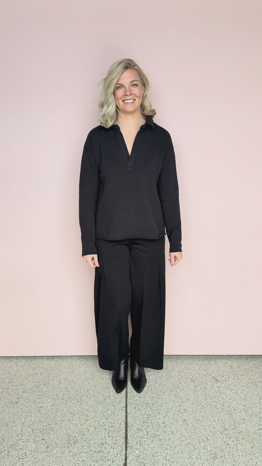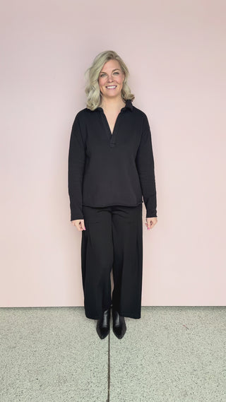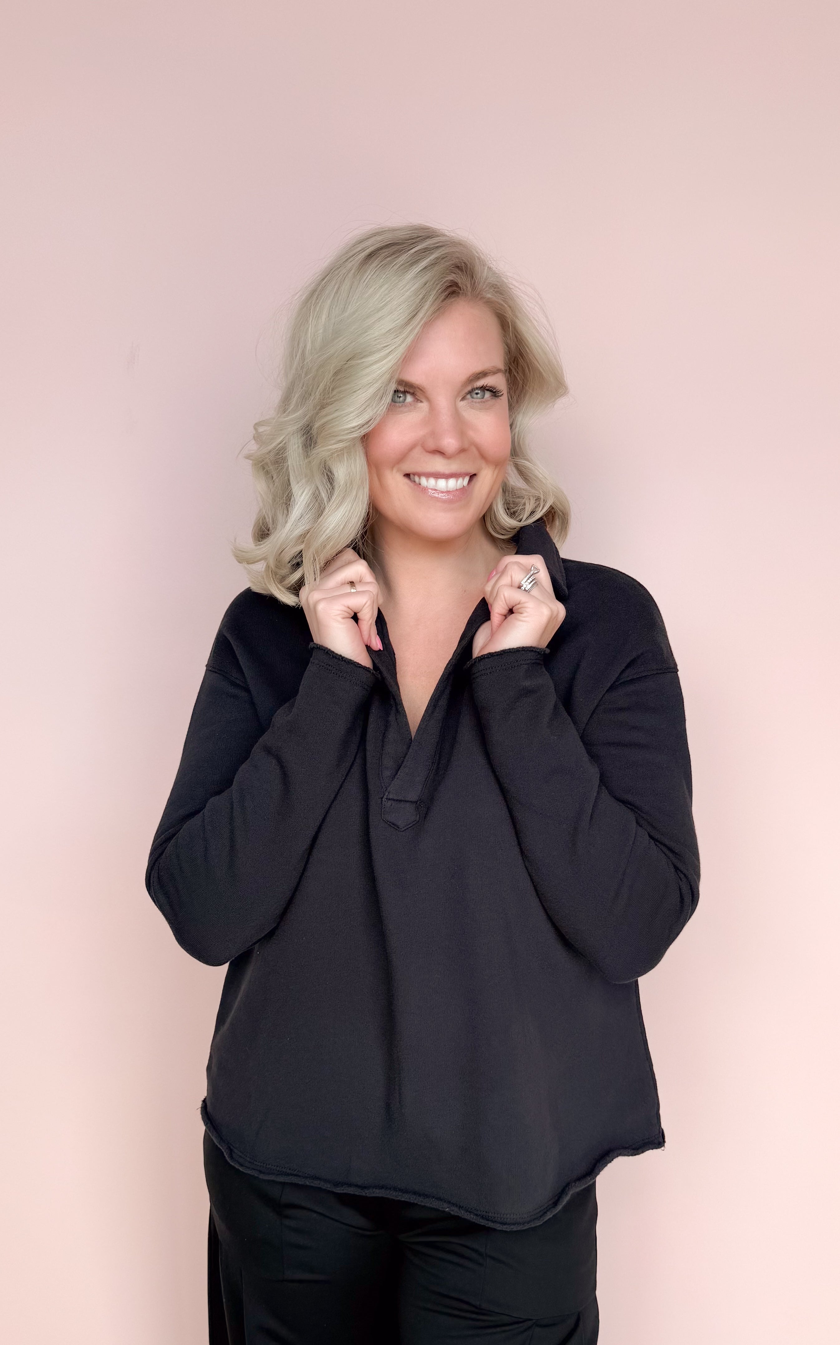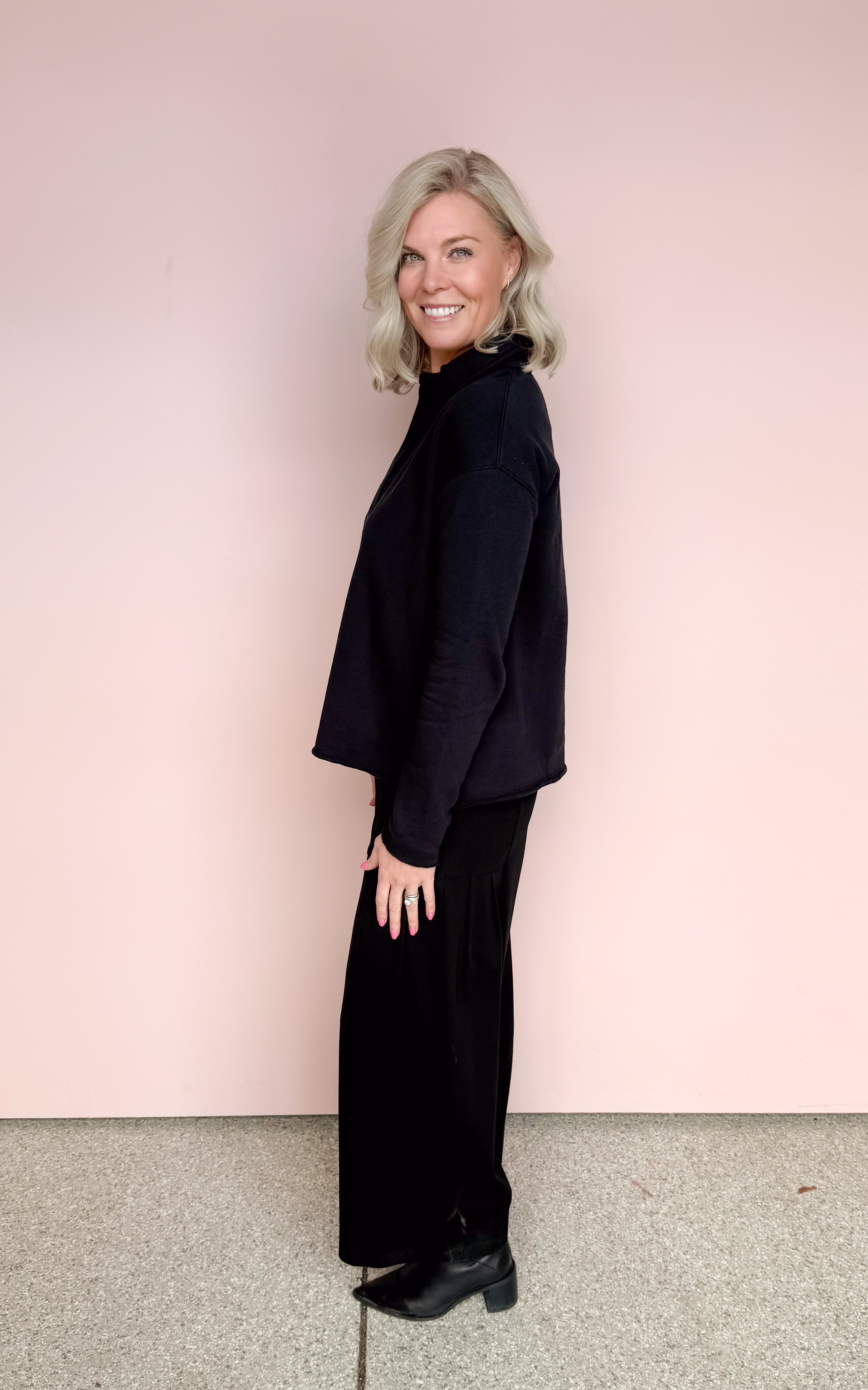 Embrace effortless edge with this sleek, jet-black pullover that’s anything but basic. Whether you're cooling down after a workout or heading out for a casual coffee date, this top brings a polished yet rebellious vibe to your lounge collection.