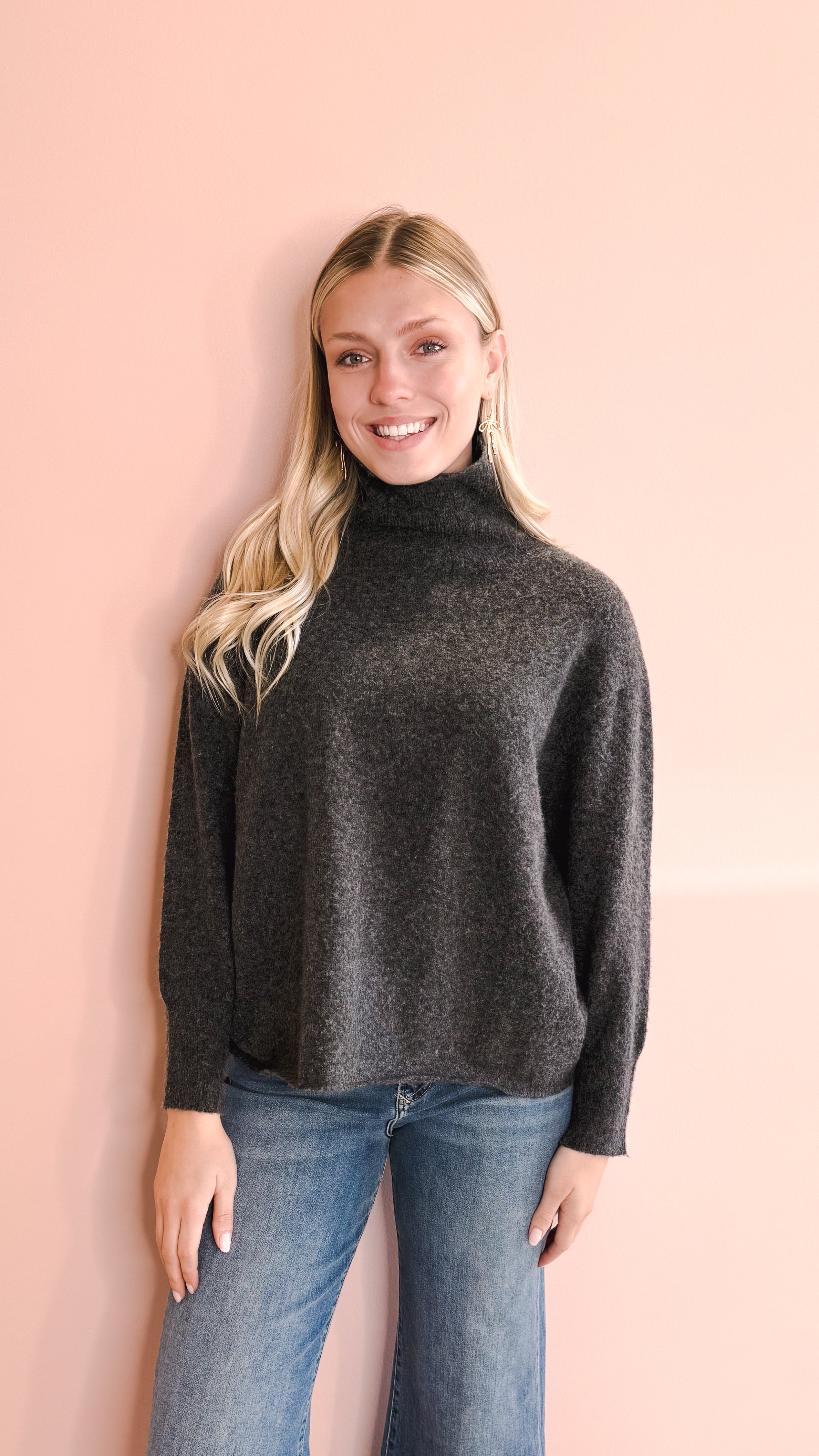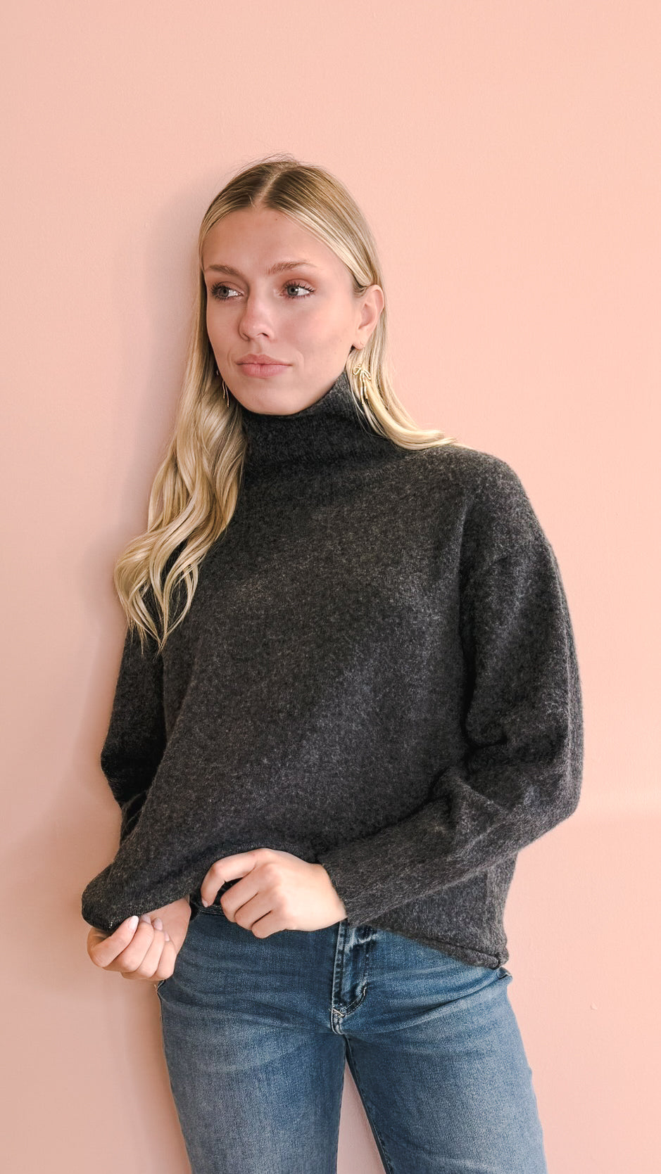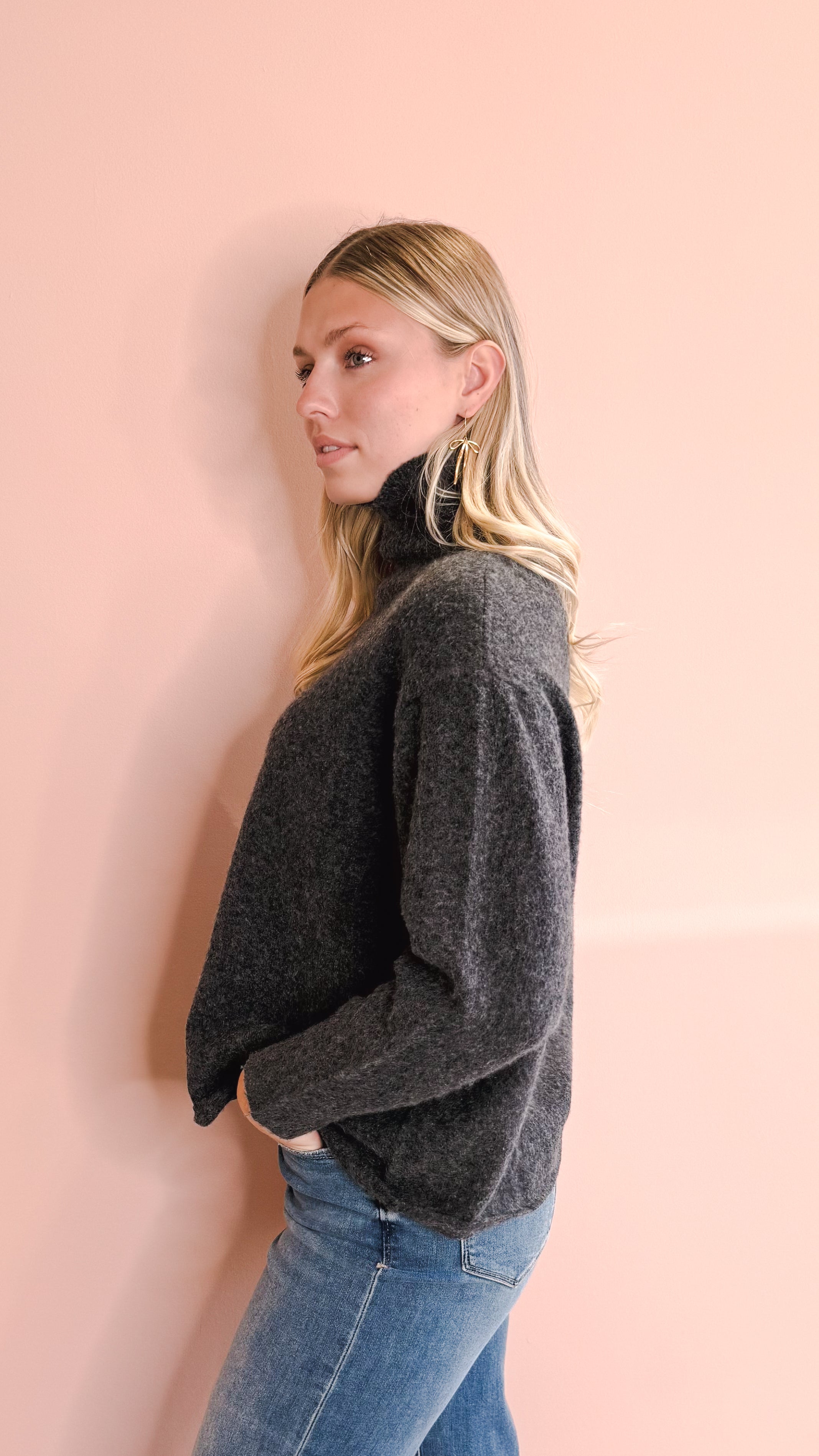CHARCOAL SLOUCH TURTLENECK SWEATER
