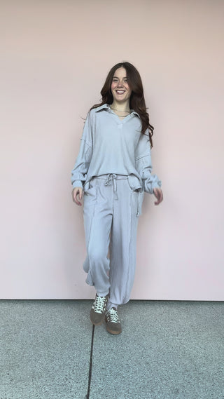 Made from textured cotton waffle fabric and finished with a mineral wash, this oversized tunic brings a perfectly broken-in feel and relaxed drape. Featuring a deep V neckline with a structured collar, it's designed for effortless layering and everyday ease. The standout 2x2 rib contrast adds subtle dimension, while raw edge details and side slits enhance the laid-back vibe with a touch of edge.
