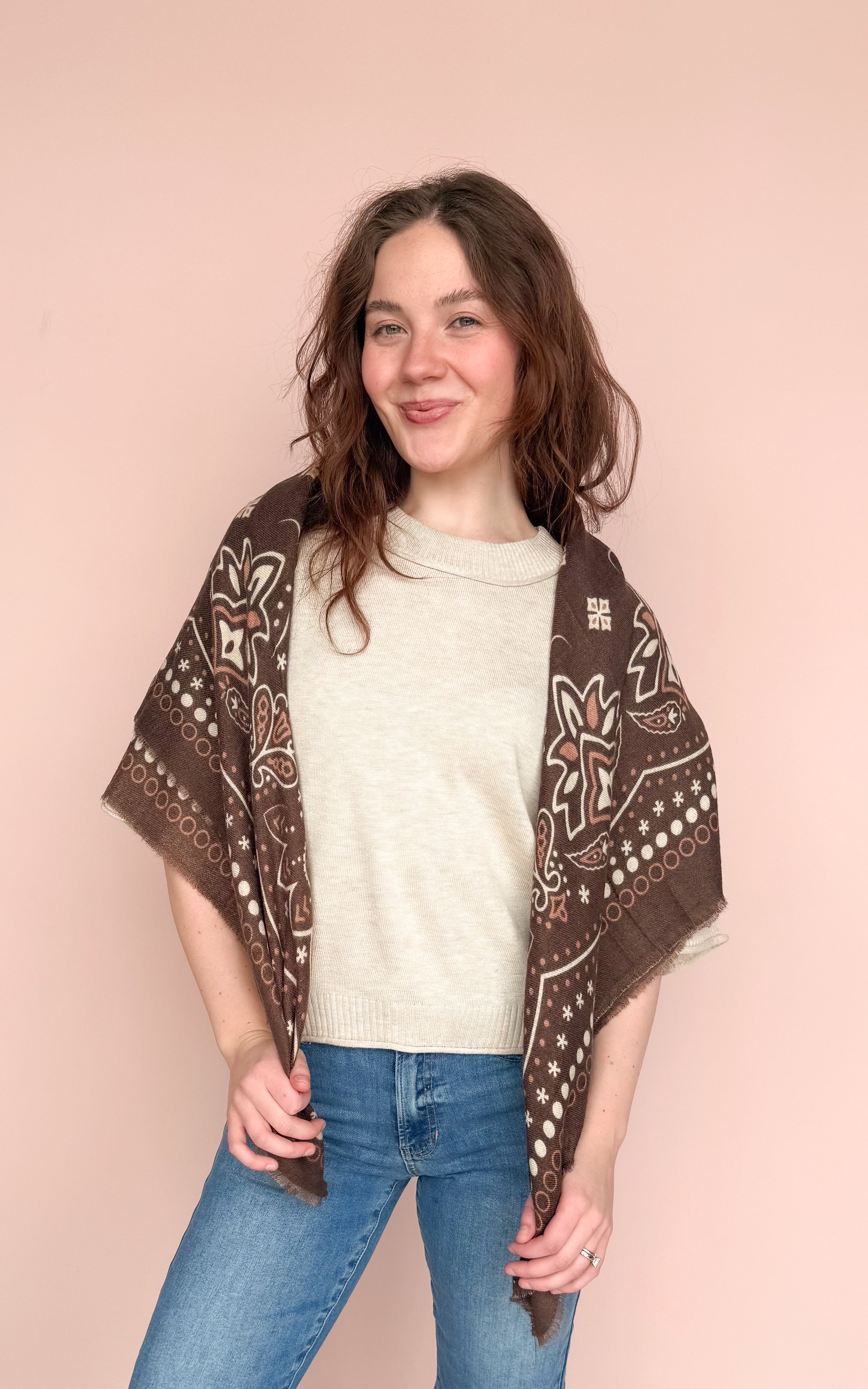 This luxurious oversized bandana scarf is your ultimate outfit maker—super on-trend and endlessly versatile! Wear as a neck scarf, cozy shawl, chic hair tie, or endless styling options to elevate any look