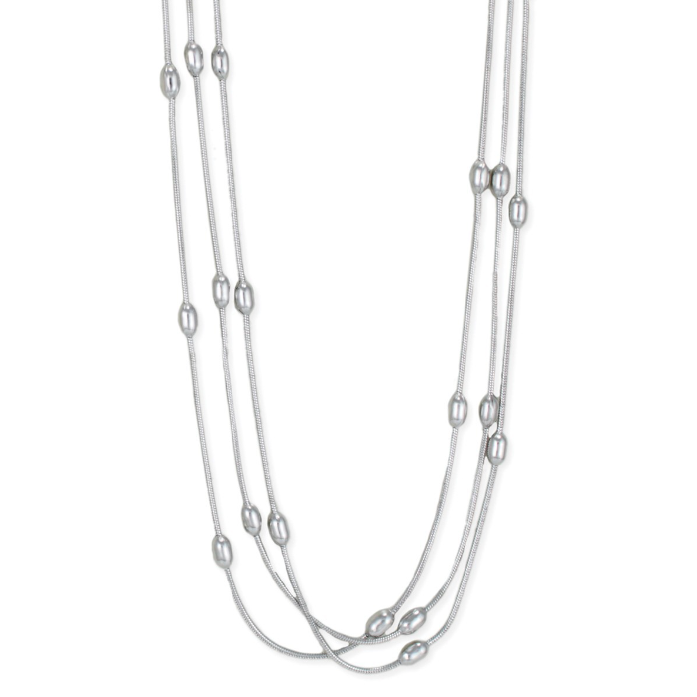 Sleek, shiny, and totally slithery, this silver 3 line snake chain necklace is all about effortless glamour. Featuring triple snake chains with silver bead accents, it’s a layering dream and a standout solo. Lightweight, modern, and bold, this silver necklace brings chic, edgy vibes to any outfit.