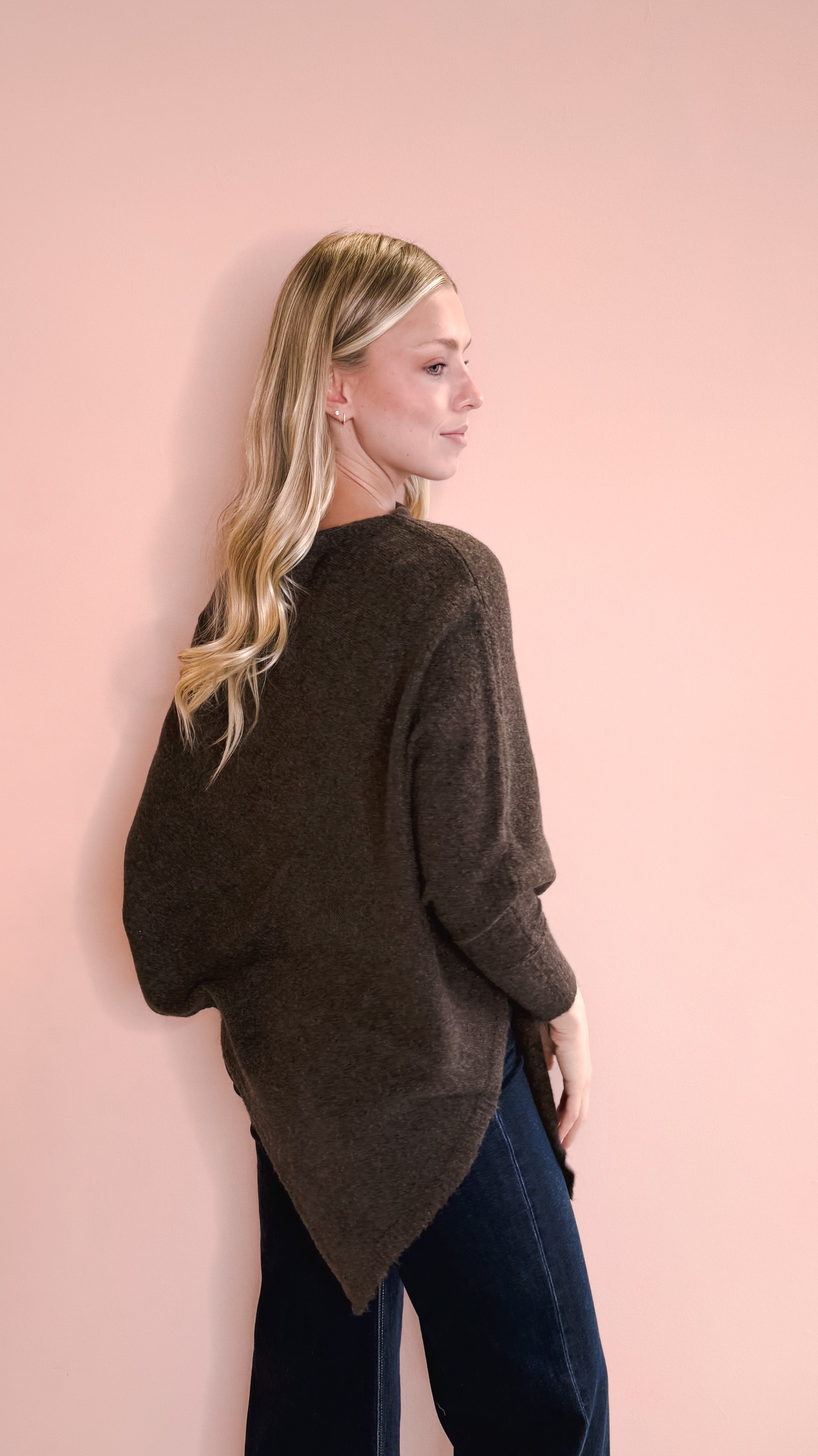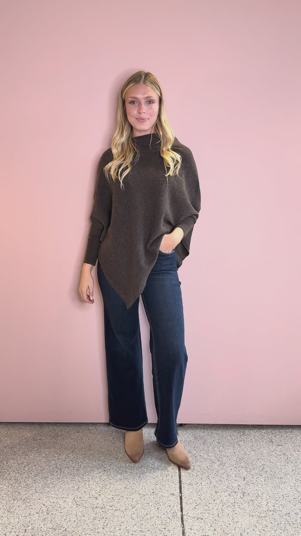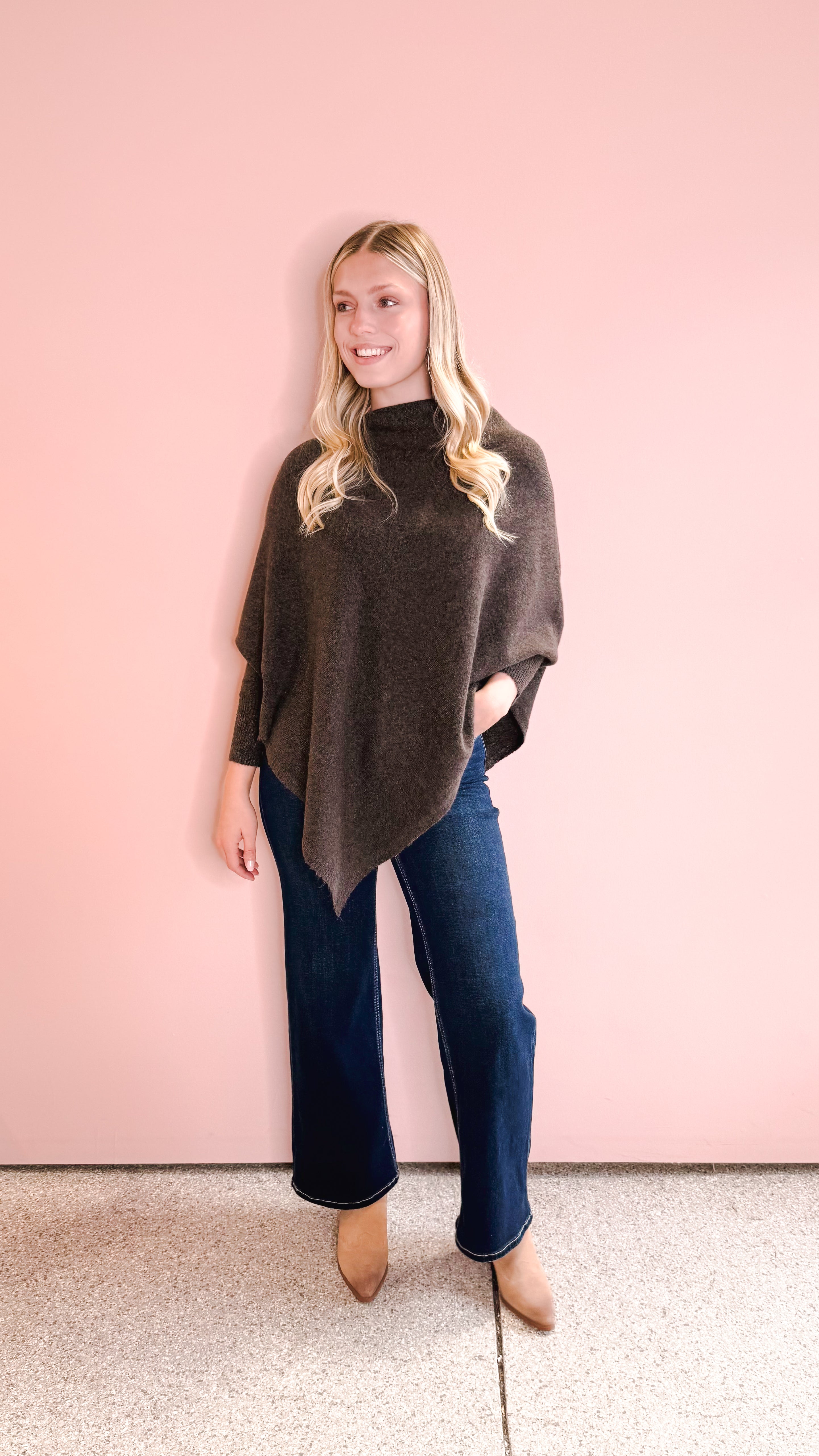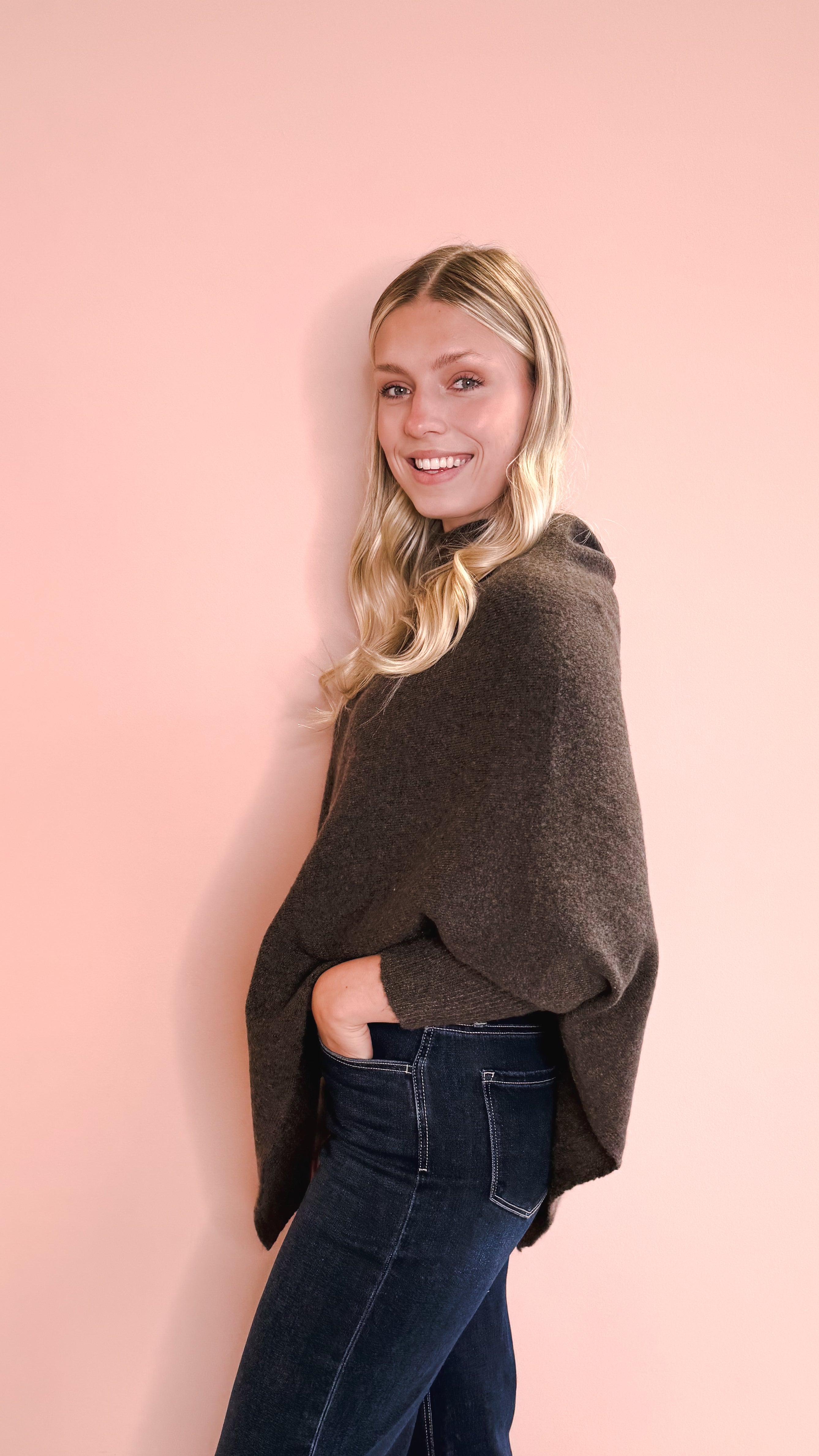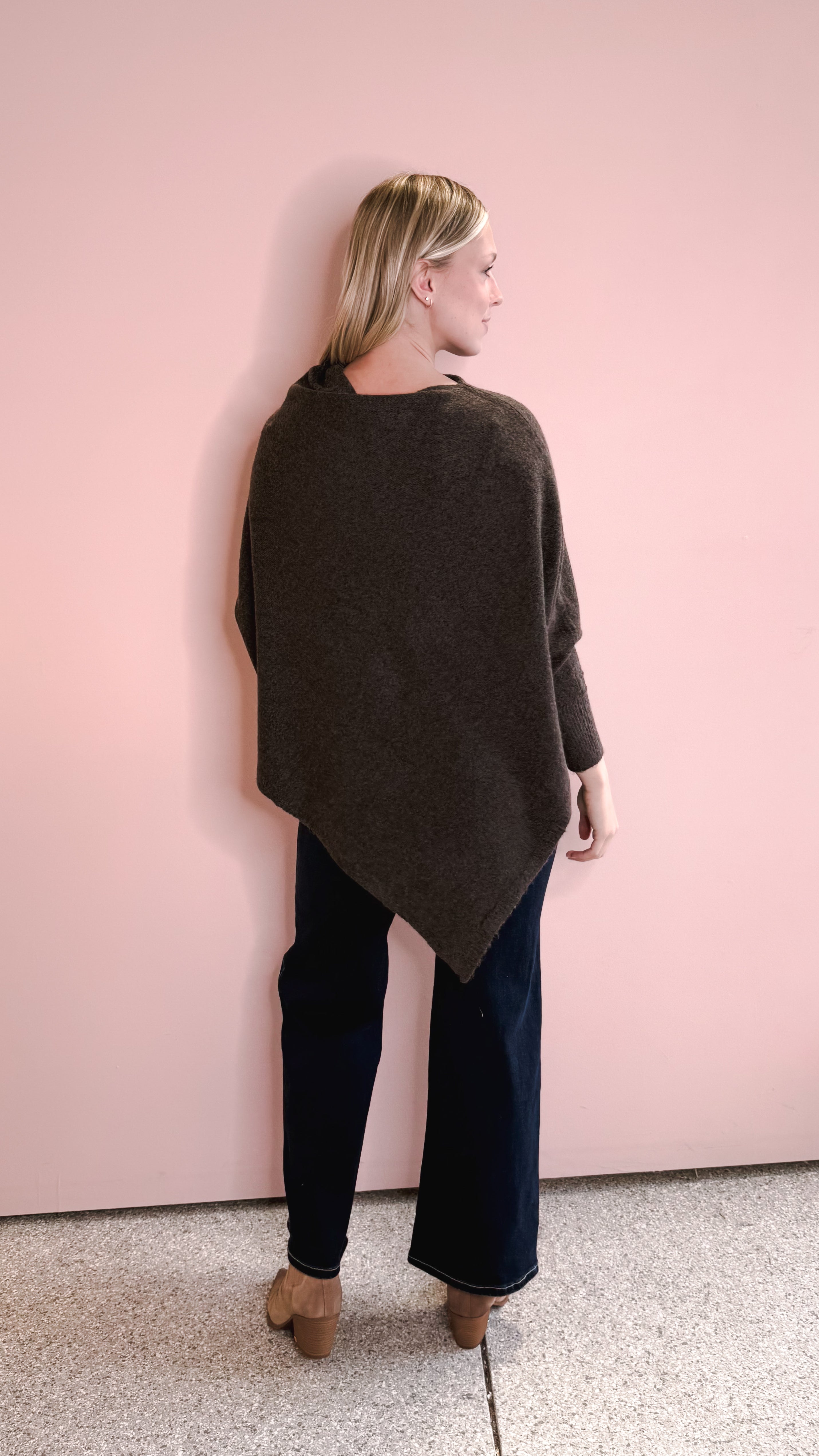The ease of a poncho with the structure of sleeves for a modern, wearable layer. Soft, stretchy, and effortlessly draped—this one-size piece transitions seamlessly across seasons and moods.
